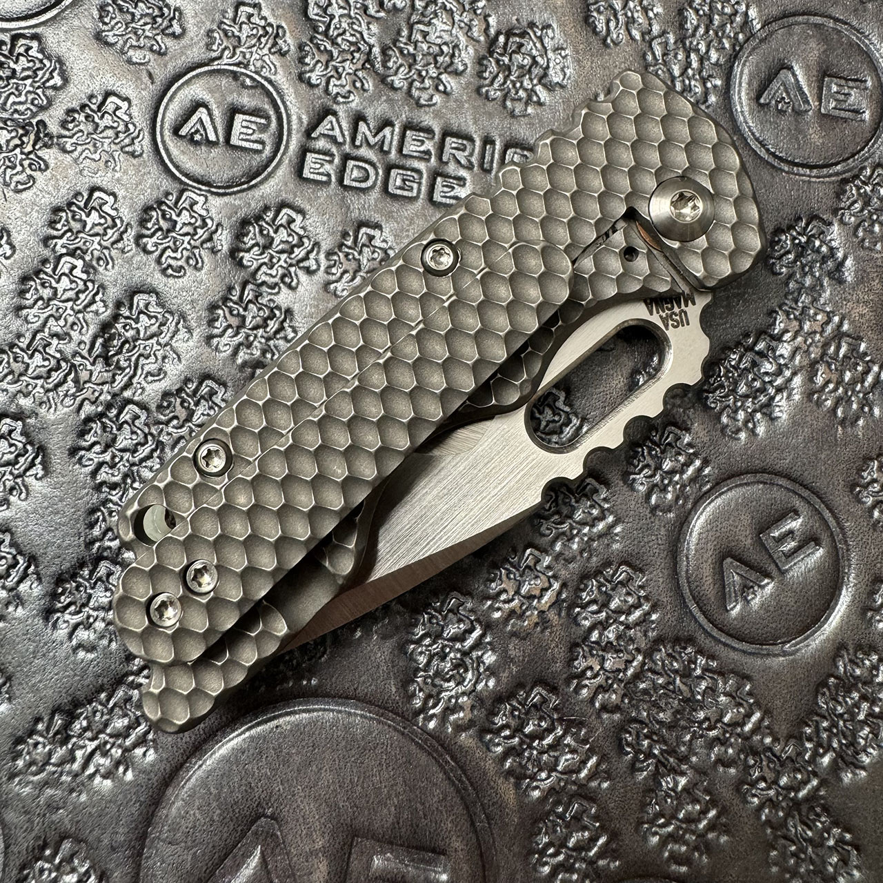 This model features a satin finished Magnacut hissatsu compound ground blade with standard cutting edge, double divot jade G10 front and titanium back scales. Comes brand new in padded, zippered pouch.
