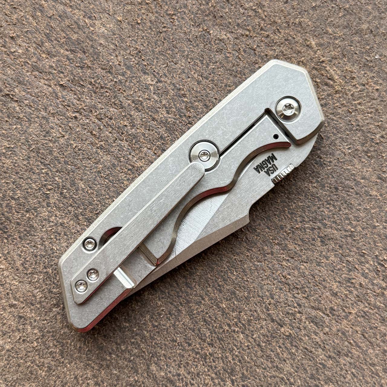 A2D Attn2Detail Mercantile Mark 3 Medium Gen 4 Framelock Folder Titanium Handle w/ Cocobolo Inlay Stonewash Satin Harpoon Rising Grind Magnacut Blade