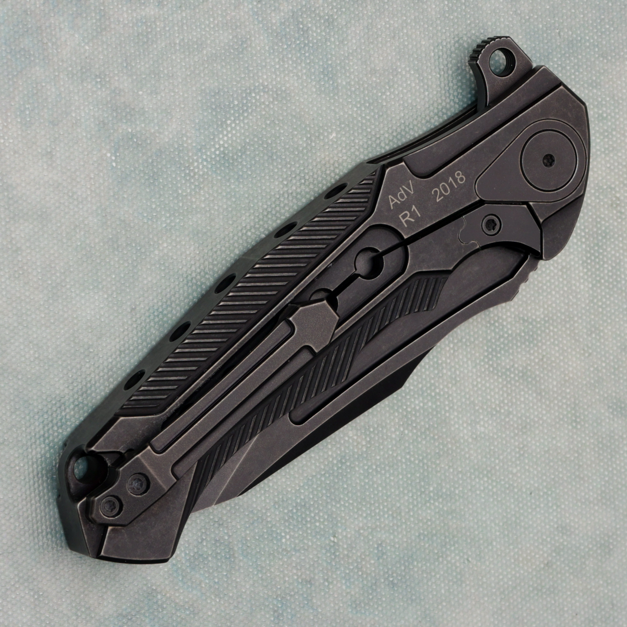 The R1 from ADV is a titanium integral frame lock with flipper and fuller deployment. It has good ergos and a nice CPM-S35VN blade. Super Smooth action. Pretty rare piece from 2018. Like new in pouch.