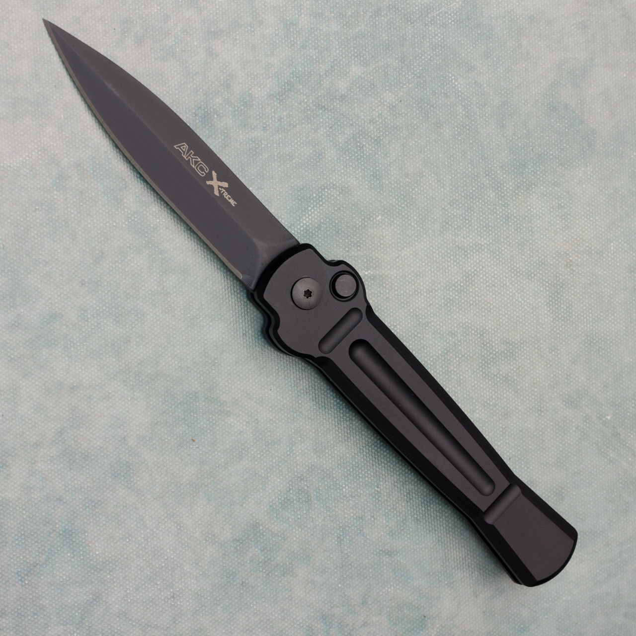AKC has upgraded their knife game with a high performance line of side opening automatic knives, dubbed the AKC X-treme ACE. AKC has stepped out from their traditional Italian stiletto roots and built a folder with snappy, reliable action that will stand up to any cutting challenge. Brand new in box.