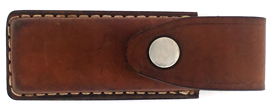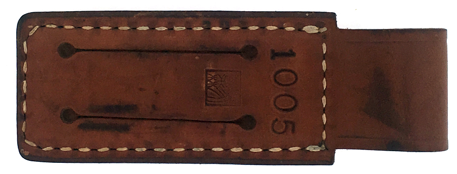 Ivory micarta handle scales that have an awesome patina similar to genuine ivory. Mirror polished stainless steel spear point blade etched with Al Mar logo. Tang stamped U.S.A. SEKI-JAPAN. Stainless steel bolsters, handle pins and lined lanyard hole. Brass liners. This is a very early Al Mar Eagle Classic that was made in 1979 or 1980. This knife would be excellent for scrimshaw as well. Mint condition with original leather sheath and paperwork.