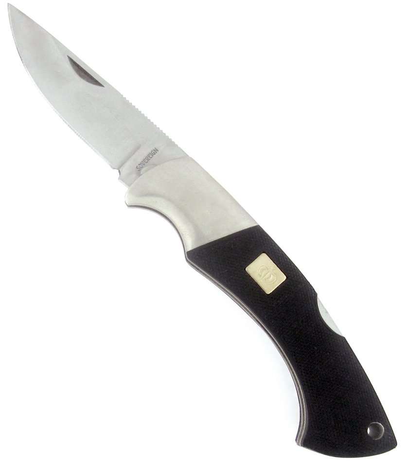 The Aristocrat Knife Sovereign series lock-backs are heavy duty knives that won't let you down. These knives have flawless fit and finish. The solid snap as they lock into place will send shivers up your spine. Kraton handle onlays for sure grip with Crown Aristocrat gold logo inlay on both sides. Nickel silver bolsters and liners. Jimping on spine of blade. Lanyard hole. Nylon Aristocrat sheath can be worn vertical or horizontal. Razor sharp edge on premium stainless steel drop point blade. Built to last a lifetime.