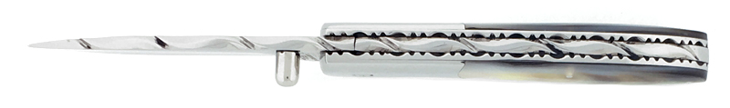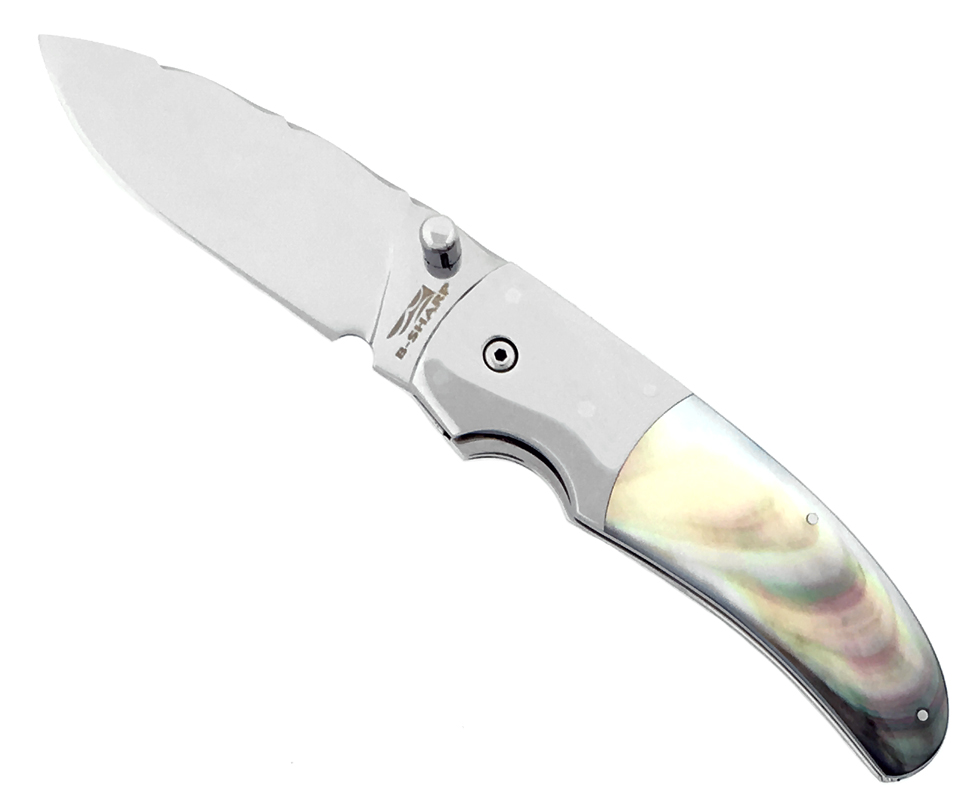 Beautiful genuine black lip pearl handle scales. Mirror polished 440C stainless steel drop point blade with thumb stud. Mirror polished stainless steel bolsters, liners and handle pins. Elegantly file worked liners and spine. A high quality handmade knife made in Bangkok, Thailand by a gentlemen named Salan Payurawongse. These knives have smooth action and excellent fit and finish! Mint condition.