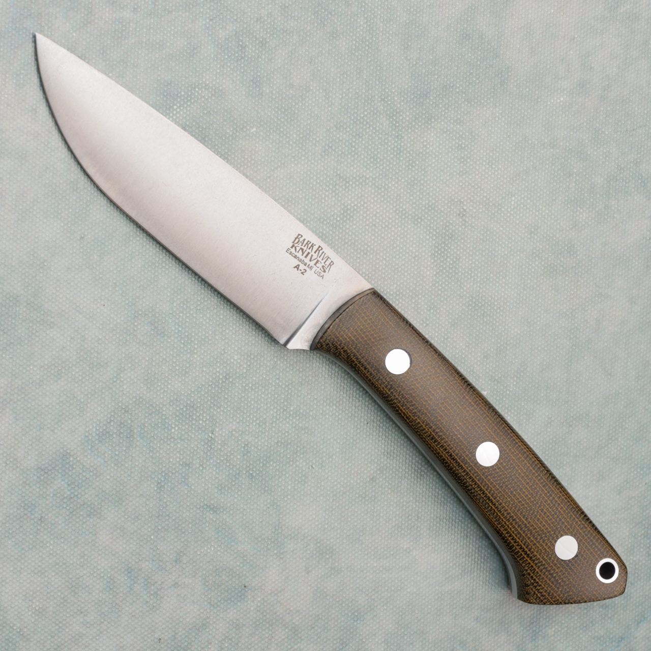 Bark River Fox River Fixed Blade Green Canvas Micarta Handle Satin A-2 Blade