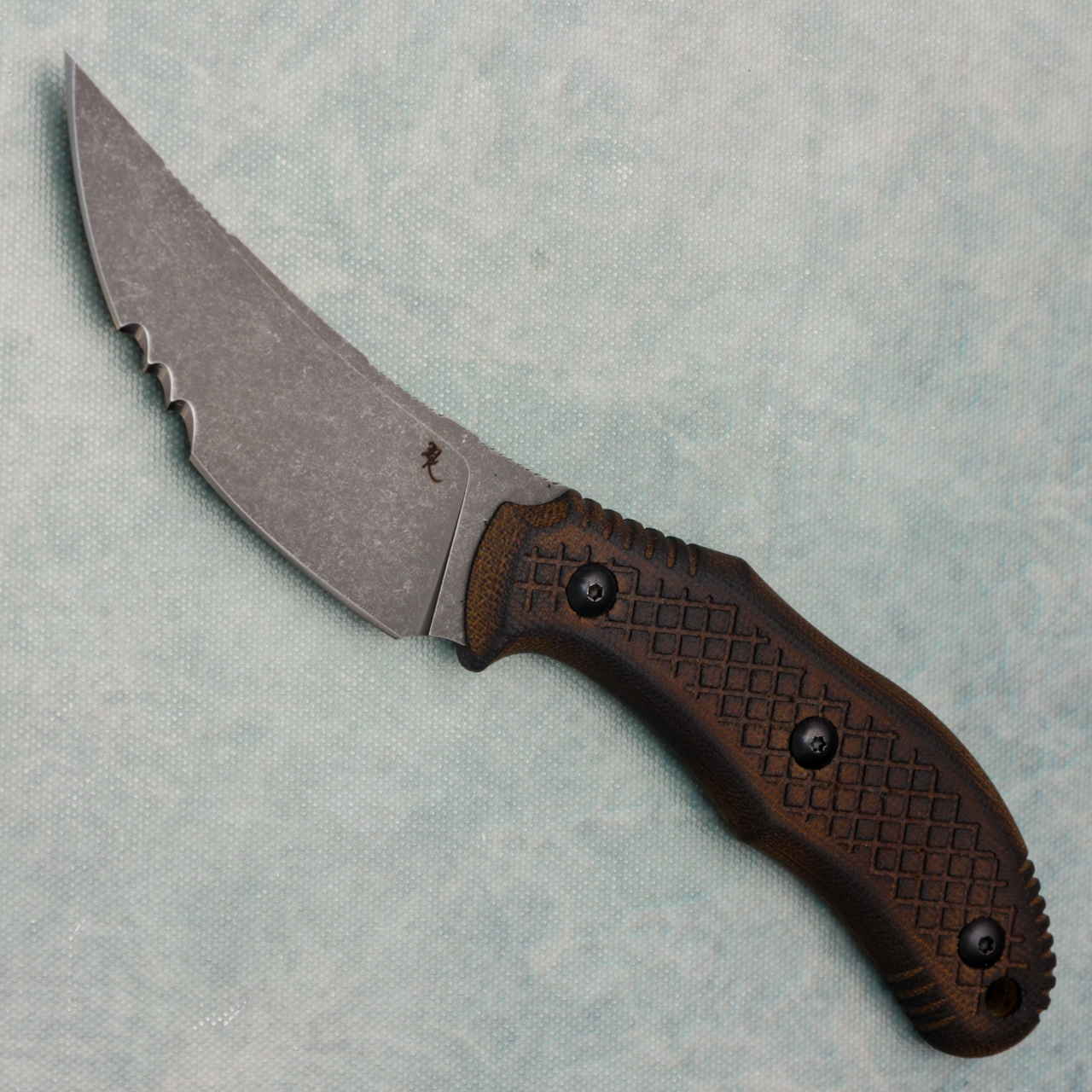 Bastinelli Creations Chopper S/E Fixed Blade Torched Micarta Handle Custom Serrated Dark Stonewash Blade