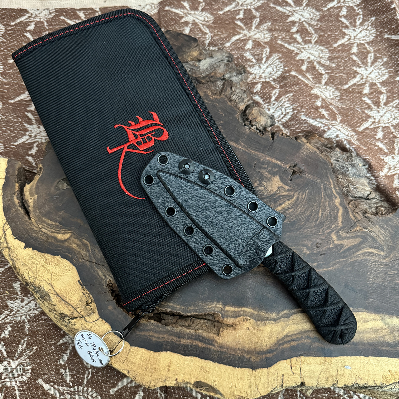Bastinelli Creations Sin Nude Fixed Blade Black Tsukamaki Grip Handle Custom Two Tone Satin Black Blade