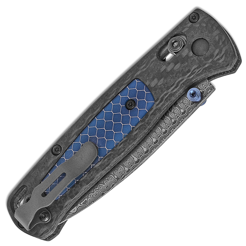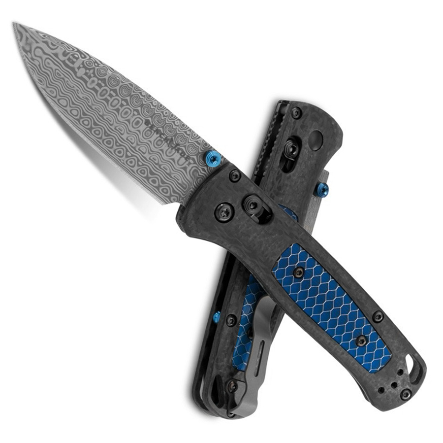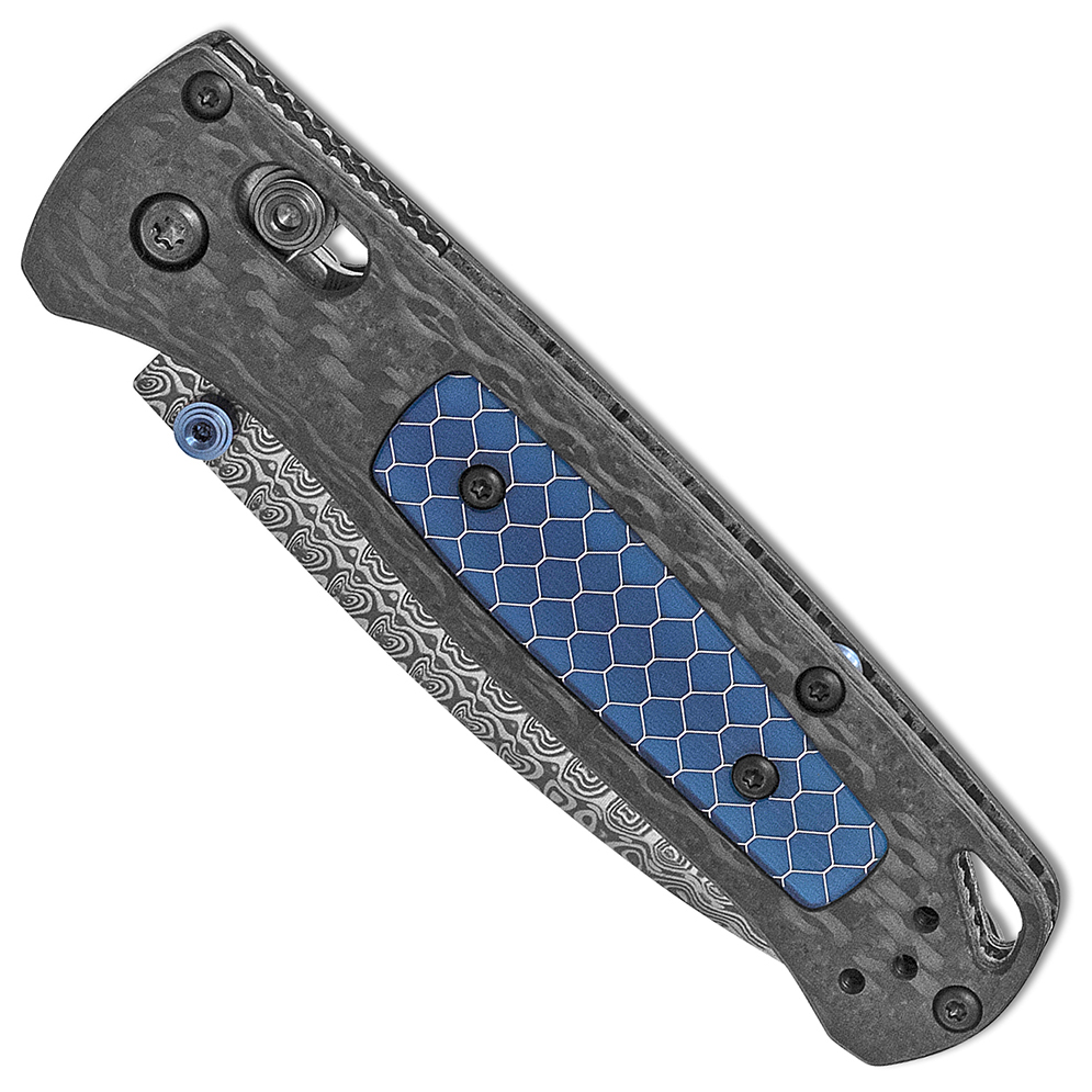Benchmade Bugout Axis Lock Ghost Carbon Fiber w/ Blue C-Tek Handle Munin Damasteel Blade Gold Class 535-191