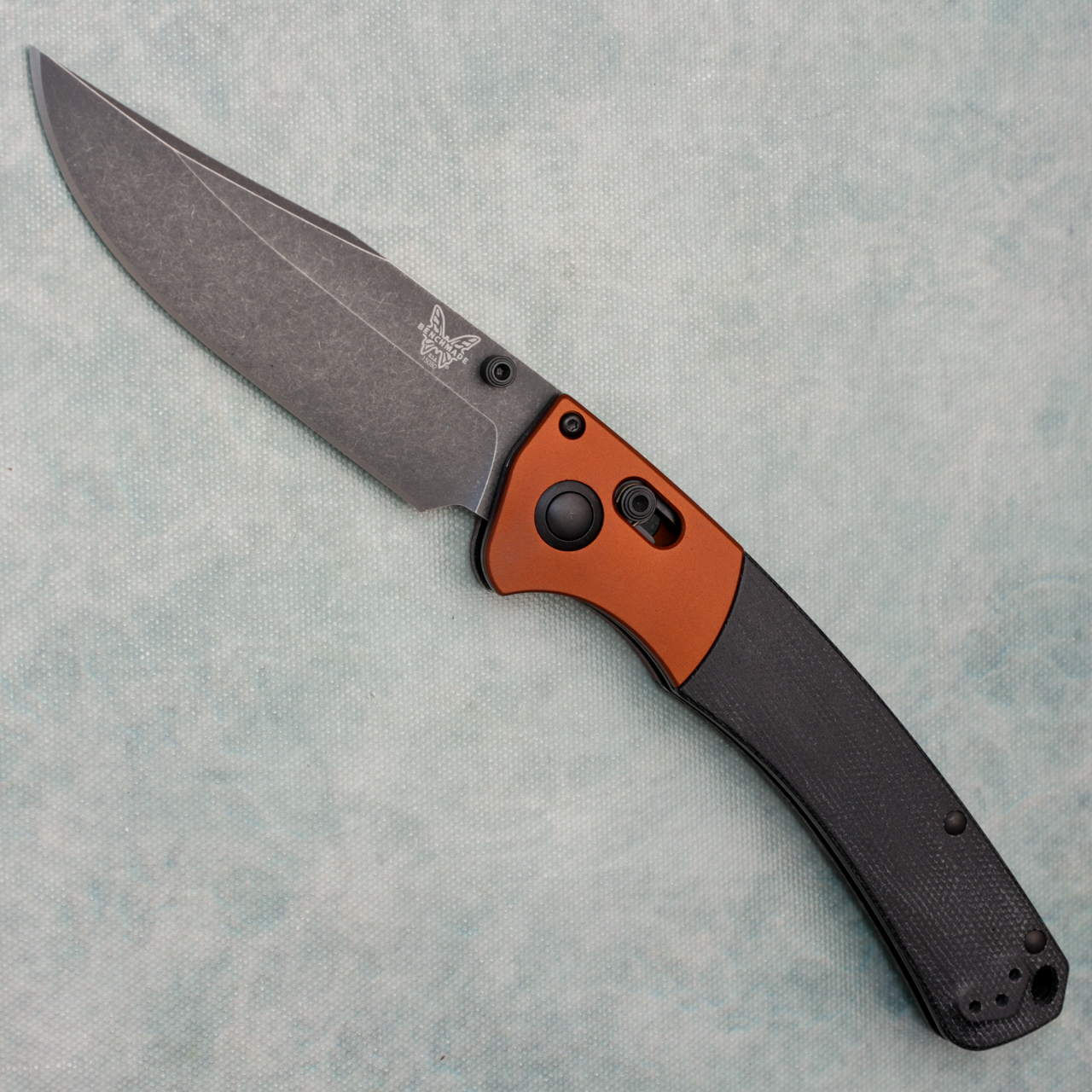 Benchmade Crooked River Axis Lock Black Canvas Micarta Handles w/ Burnt Copper Aluminum Bolsters Blackwash Blade 15080BK-04
