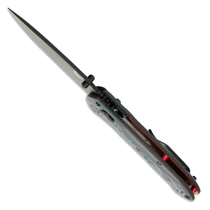 The 560BK-1 Freek is a feature rich, manual opening everyday carry knife. This variant is built for both form and function. Black and gray G-10 scales are milled for excellent grip. A base layer of red G-10 and red anodized all I um barrel spacers really set off the look. Combine the durable G-10 handles with a Cerakote finished CPM-M4 blade and you have a hard use package ready for whatever you want to throw at it. Reversible tip up carry carry pocket clip, dual thumb studs, and axis lock make this knife totally ambidextrous. Lanyard hole. Affectionately nicknamed the "Super Freek" by many and we think that fits nicely.
