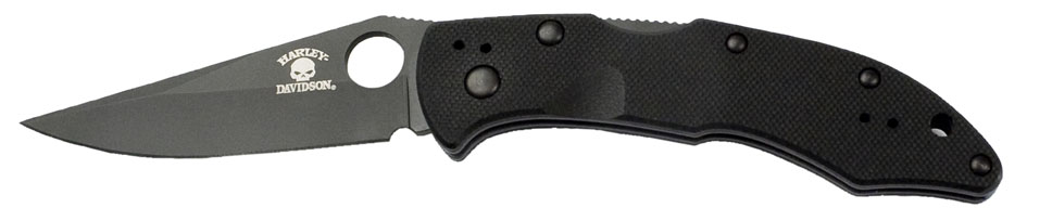 Awesome sculpted black G-10 handle scales. Black coated 9Cr13 stainless steel blade etched HARLEY DAVIDSON - BENCHMADE. Thumb hole to easily open the blade. Four way adjustable black pocket clip. Lanyard hole. Titanium back spacer. Awesome Harley Davidson Benchmade pocket knife. Comes brand new in box.
