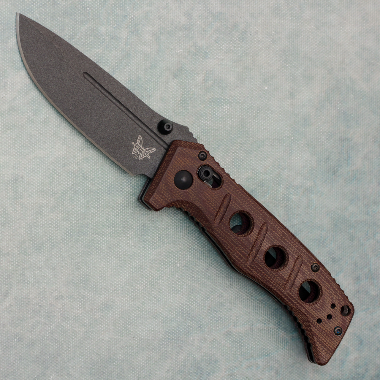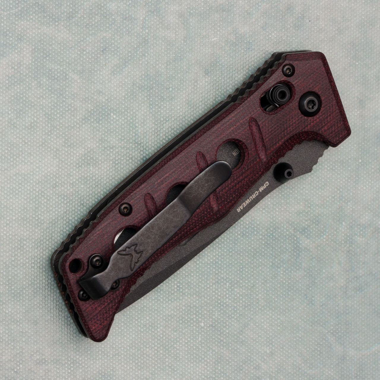 Benchmade Mini Adamas Axis Lock Premium Red Micarta Handle Drop Point Cobalt Black Blade 273BK-2201 (Pre-owned)