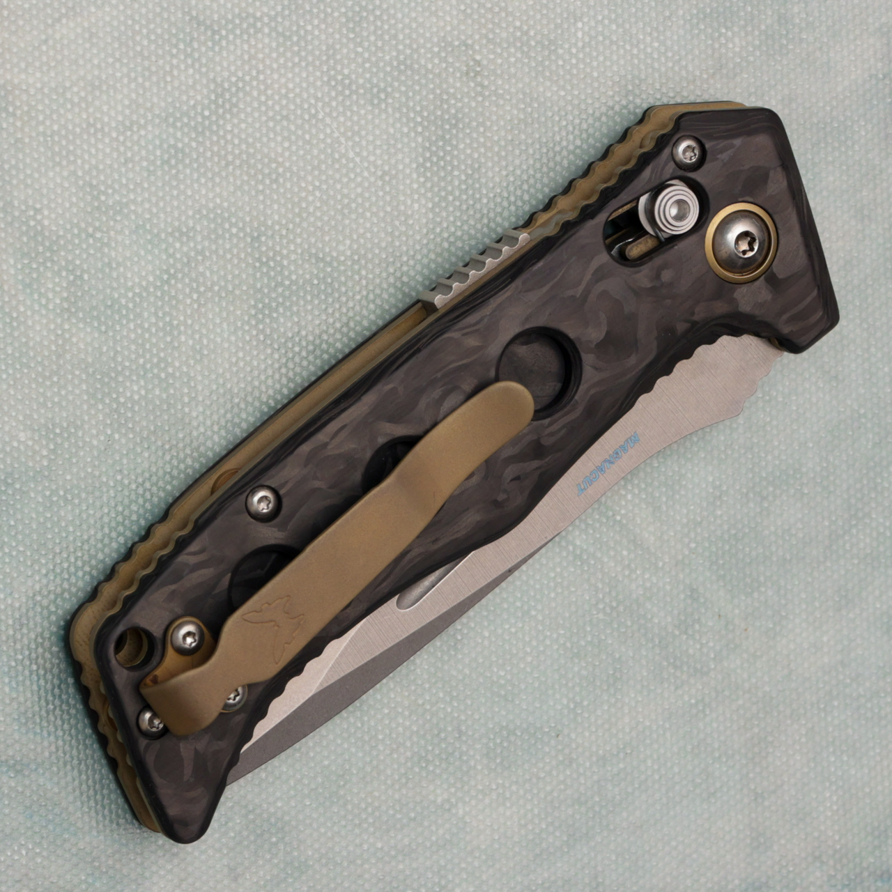 Benchmade Mini Auto Adamas Axis Lock Marbled Carbon Fiber Handle Drop Point Satin MagnaCut Blade 2730-03 (Pre-owned)