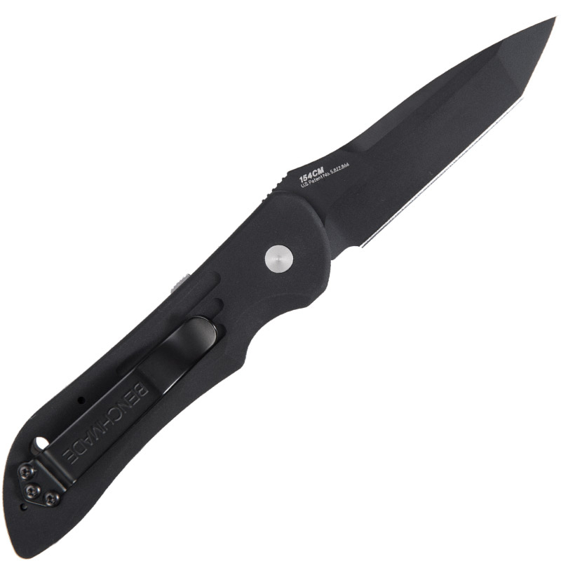 Black coated 154-CM stainless steel blade features a unique drop-point Tanto blade shape for a broad range of duty operations. Machined aircraft aluminum handle is engineered to provide a solid yet comfortable grip even when wet. BK1 coating provides excellent corrosion protection. Removable black tip-up pocket clip. Great action! Comes brand new in box!