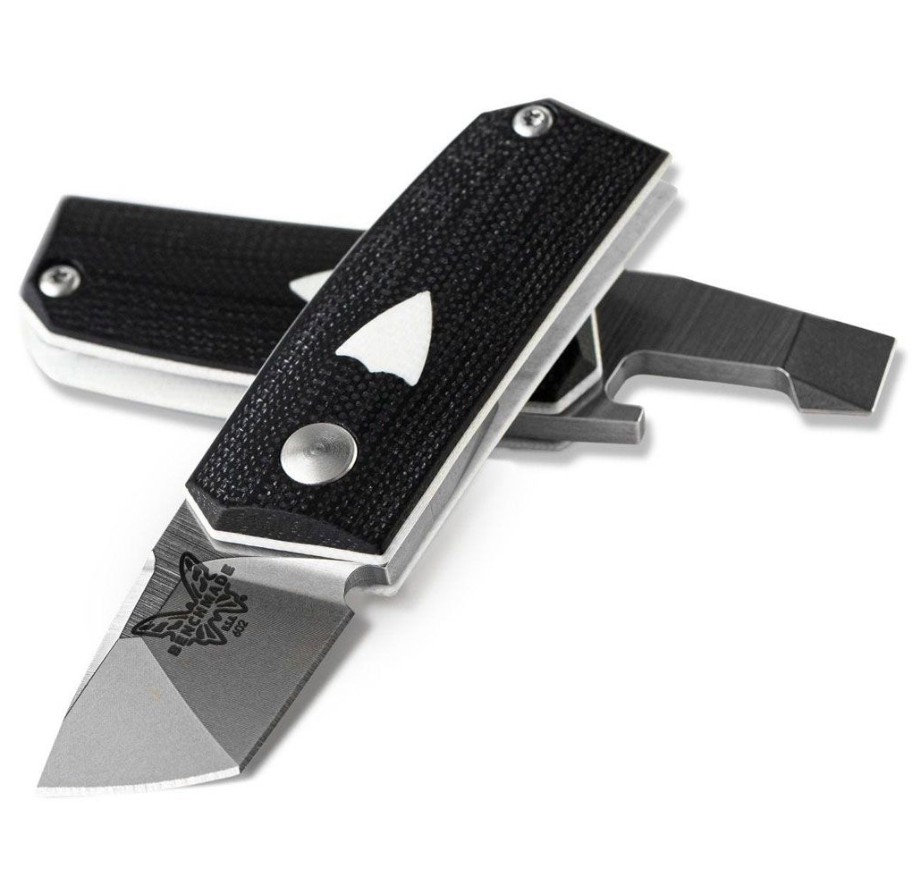The 602 Tengu Tool from Benchmade builds on their partnership with custom Knifemaker Jared Oeser. This handy little tool takes its design from the 601 Tengu flipper in a more unique compact package. A friction folder with a stubby tanto blade when open and a useful bottle opener/flat head screw driver when closed. The bottle opener actuates the blade for a smooth experience. A slim and classy little tool that features black and white clad G-10 handle scales. Stonewash finished CPM-20CV premium stainless steel tanto blade. A traditional white G-10 arrowhead inlaid shield. Includes a quality black leather slip pouch. First production run. Brand new in box.