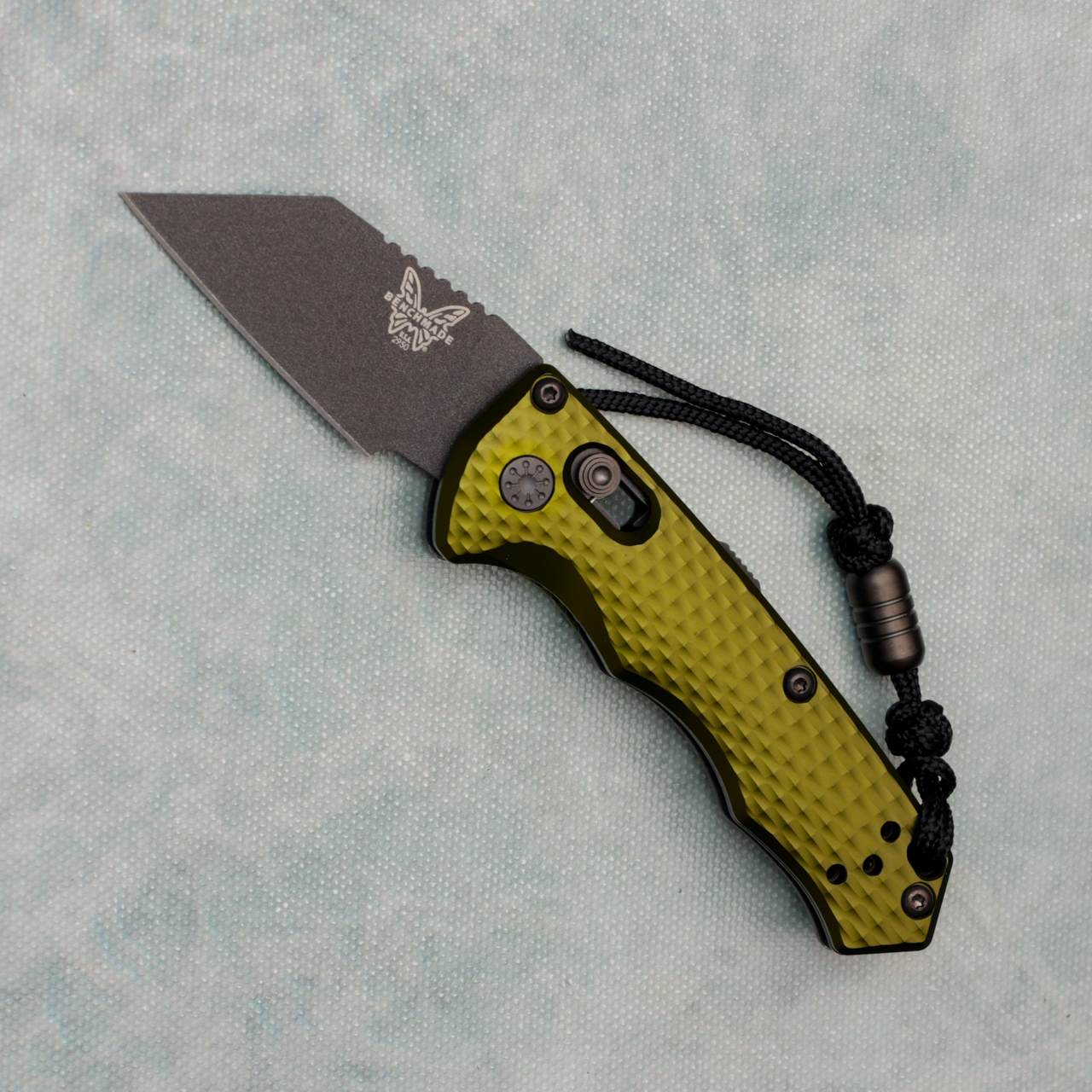 Benchmade Partial Immunity Axis Lock Auto Woodland Green Aluminum Handle Cobalt Black M4 Blade PROTOTYPE (Salesman Sample) 2950BK-2