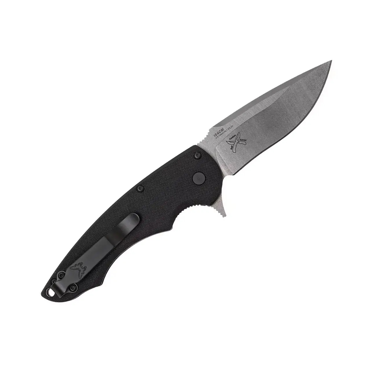 A compact flipper that marks Benchmade's second designer collaboration with Butch Ball, based off his custom Skorpion M flipper. The 320 Precinct features textured G10 combined with the finger relief handle design Butch incorporates to provide exceptional grip. The 3.3" drop point blade is made from 154CM American made premium grade best all around stainless steel that offers great corrosion resistance with good toughness and edge qualities. Brand new in box.