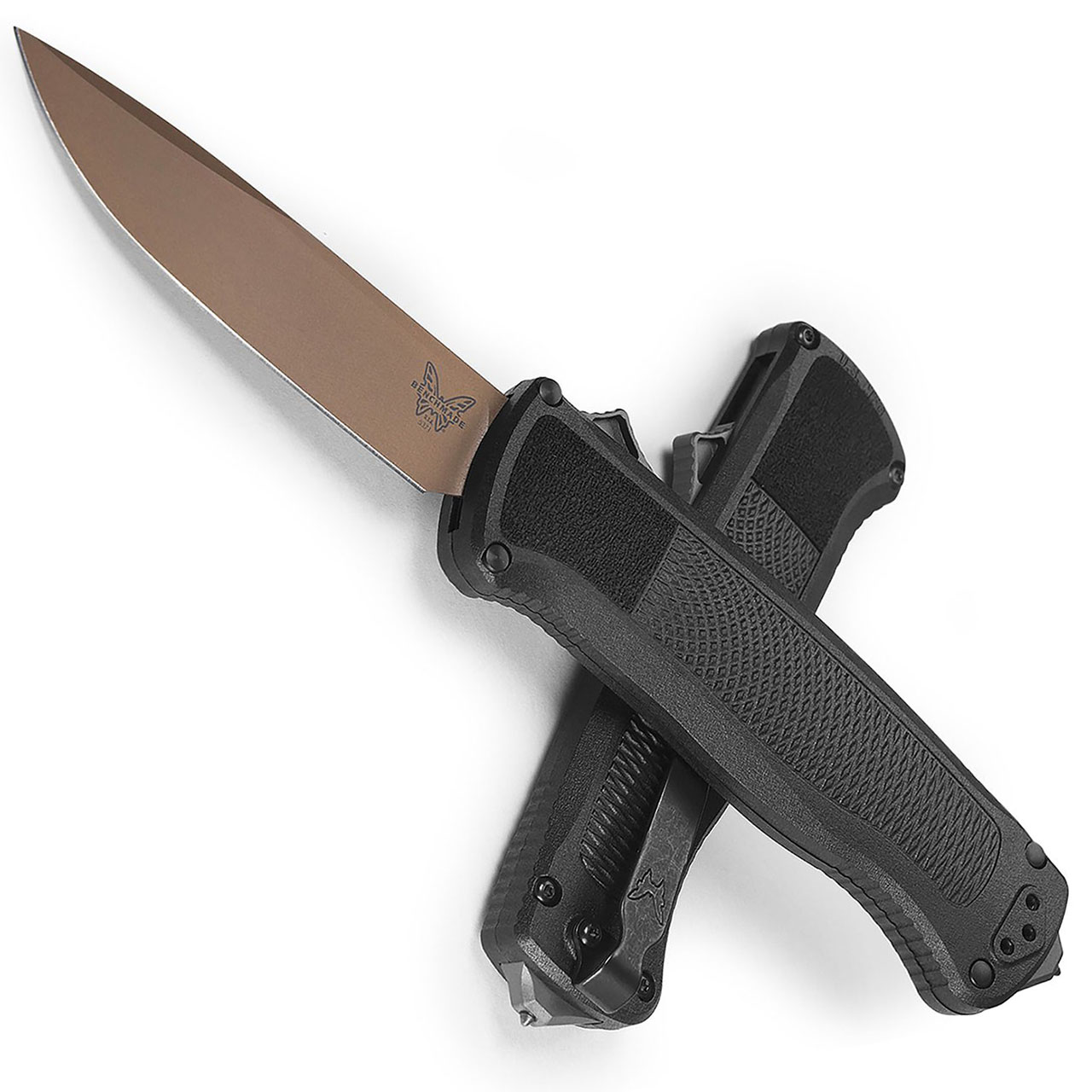 Benchmade Shootout Drop Point OTF Auto Black CF Elite Handle FDE Blade 5371FE