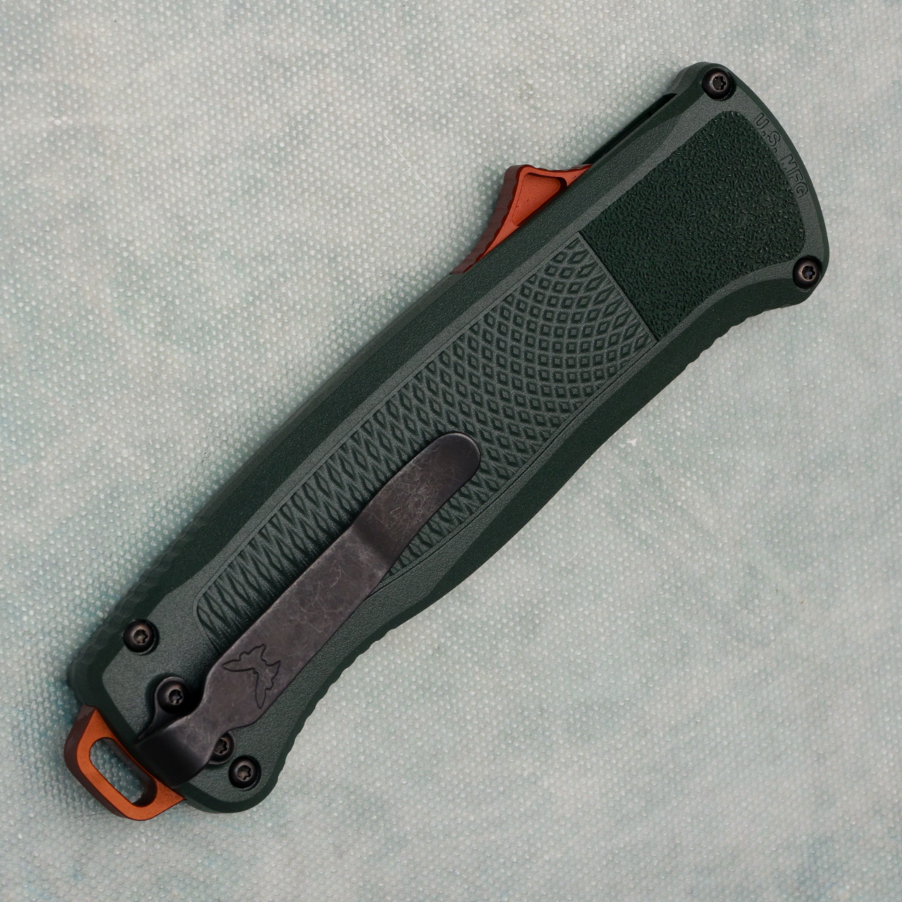 Benchmade Shootout OTF Auto Drop Point Taiga Green Grivory Handle FDE PVD Battlewash Z-Wear Blade 5371FE-2601