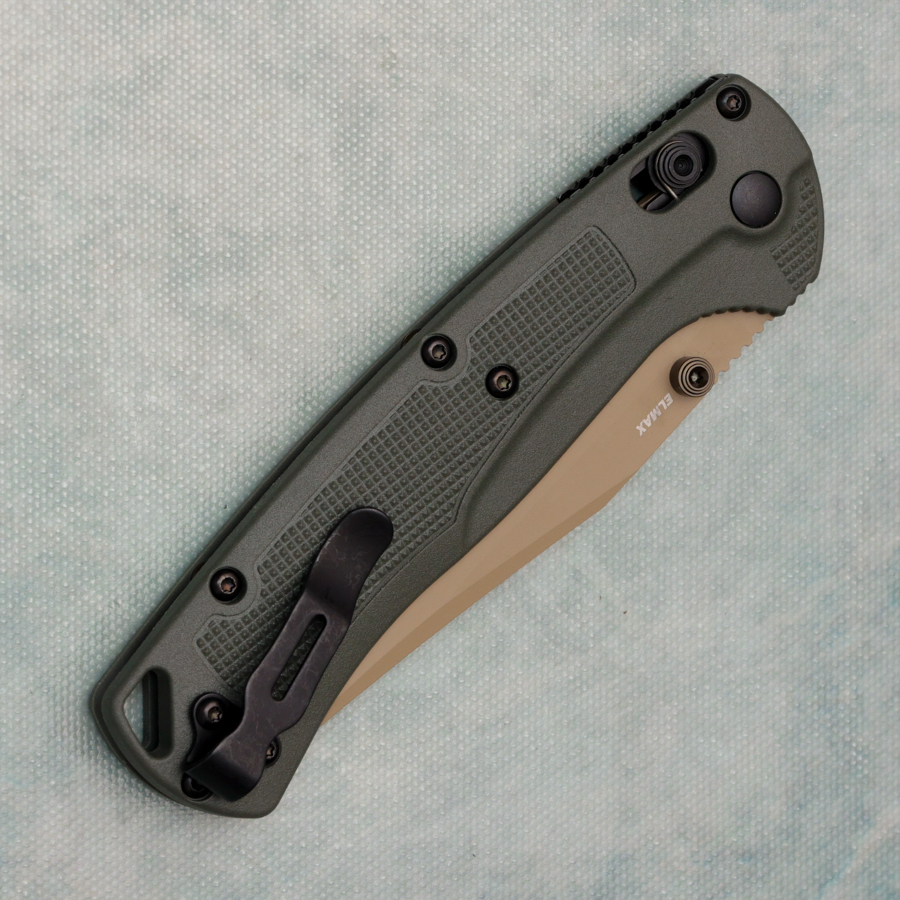 Benchmade Taggedout Axis Lock Deep Olive Grivory Handle Tan Cerakote Elmax Blade 15536TN-02