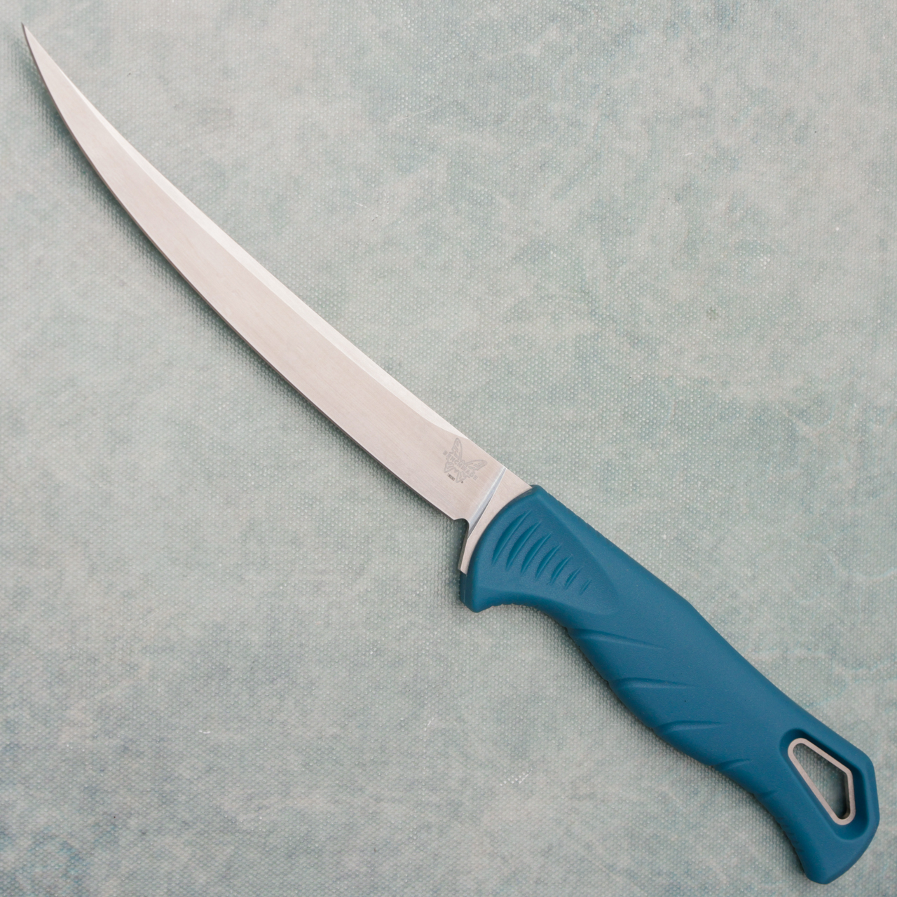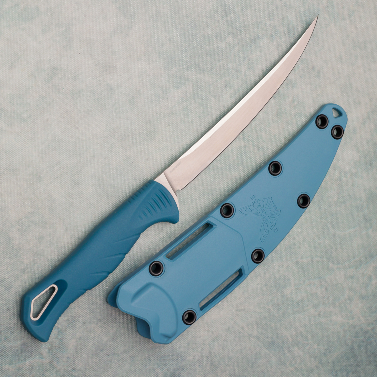 Benchmade Water Fishcrafter 5" Fillet Knife Depth Blue Santoprene Handle Stonewashed Blade 18030