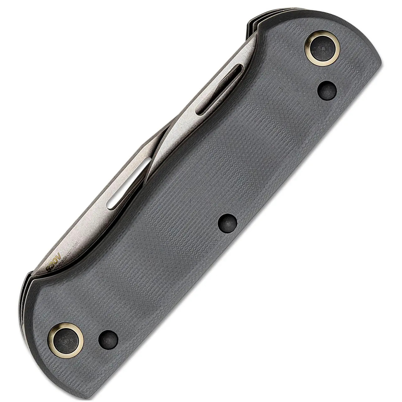 This model is a revived traditional folder pocket knife designed for weekend getaways in the great outdoors. It has cool gray G10 Handles, with two blades made of CPM-S30V and a bottle opener, the weekender has everything you need for basic camp chores, from whittling to opening a cold beverage by the campfire. Brand new in box.
