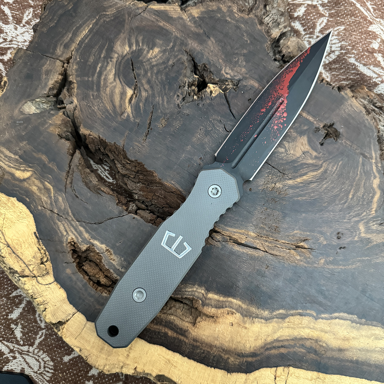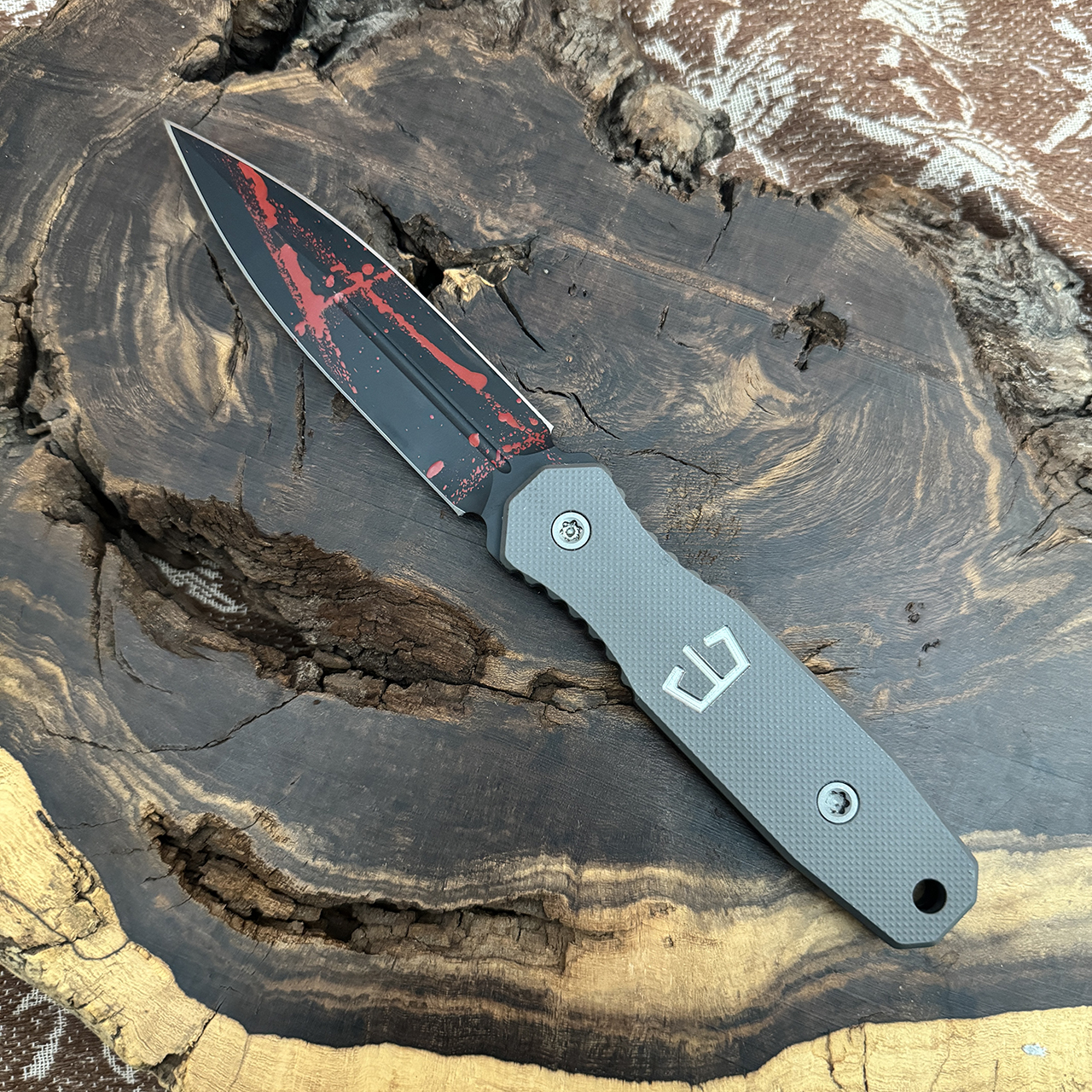 This particular model features a textured titnaium handle and a Murdered Out Camo finished Magnacut double edge dagger blade with standard cutting edges. Comes brand new in box.