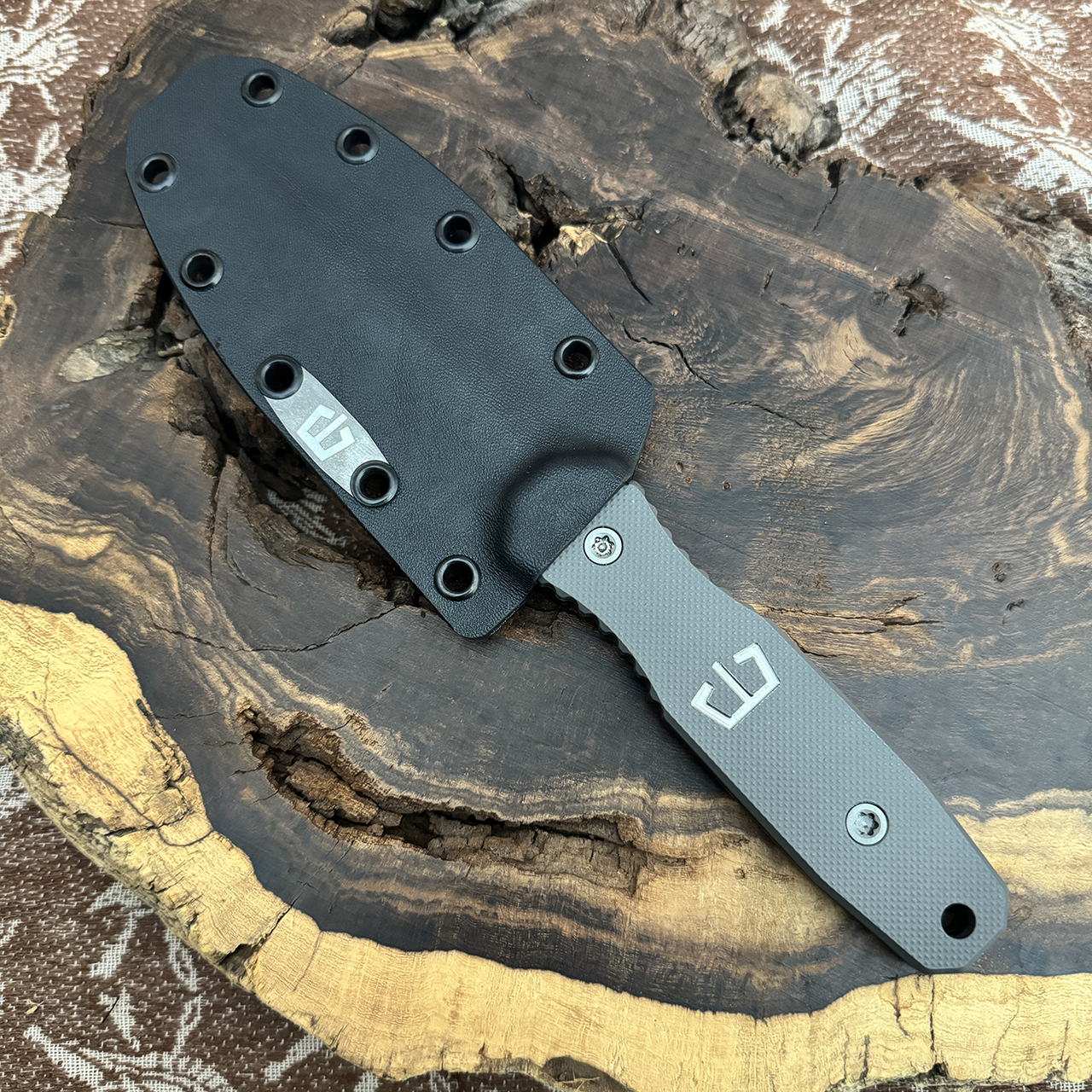 Phase 7 is a double edge fixed blade dagger by Blackside Custom fixed blade dagger. The P7 is small batched produced and included custom detailing everywhere including custom patterned milled scale screws and logo sheath tag. The Phase 7 SDM (Size Does Matter) is a larger version of the Phase 7.