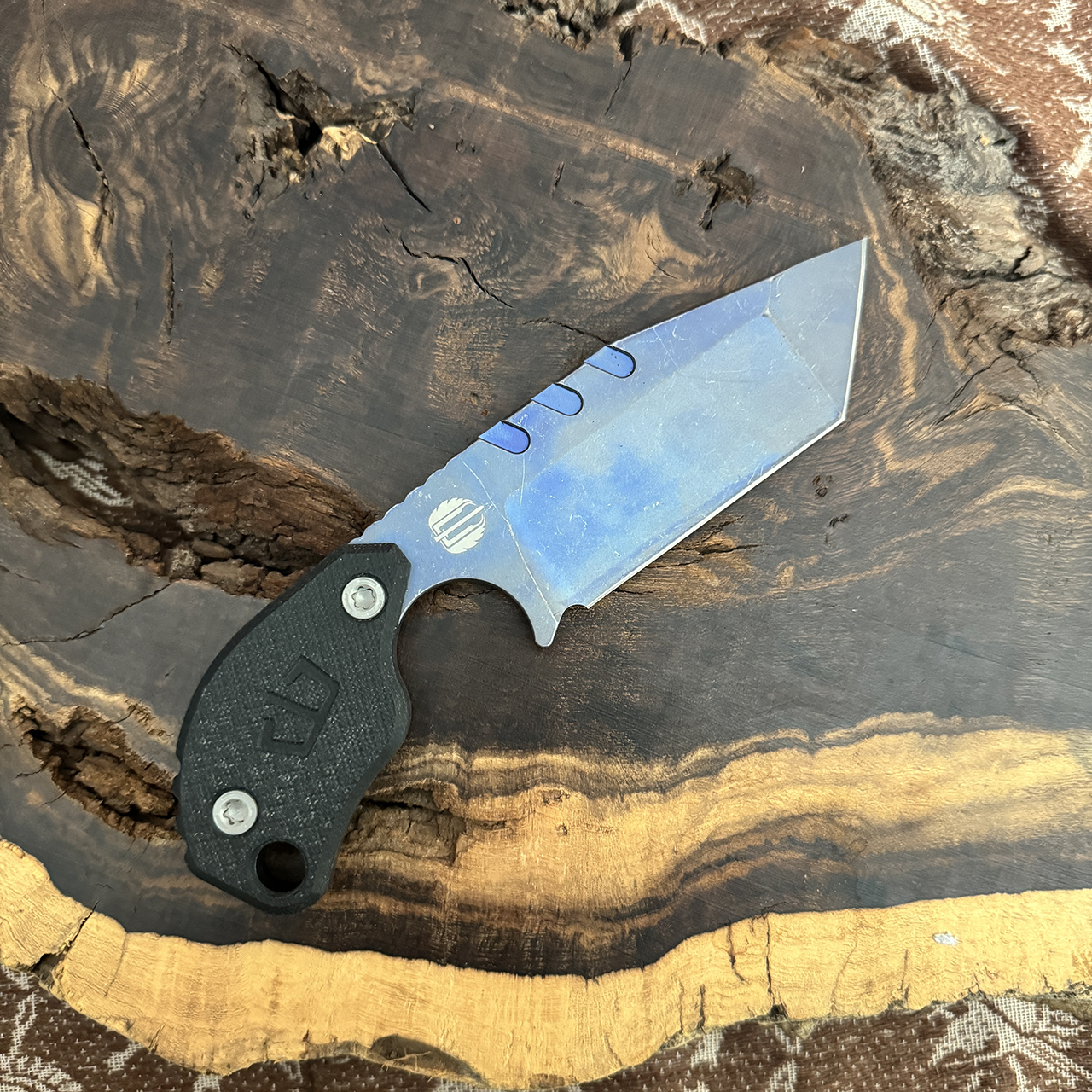 Blackside Customs Strider Knives SLCC Fixed Blade Tanto Black G10 Handle Blued Titanium Blade