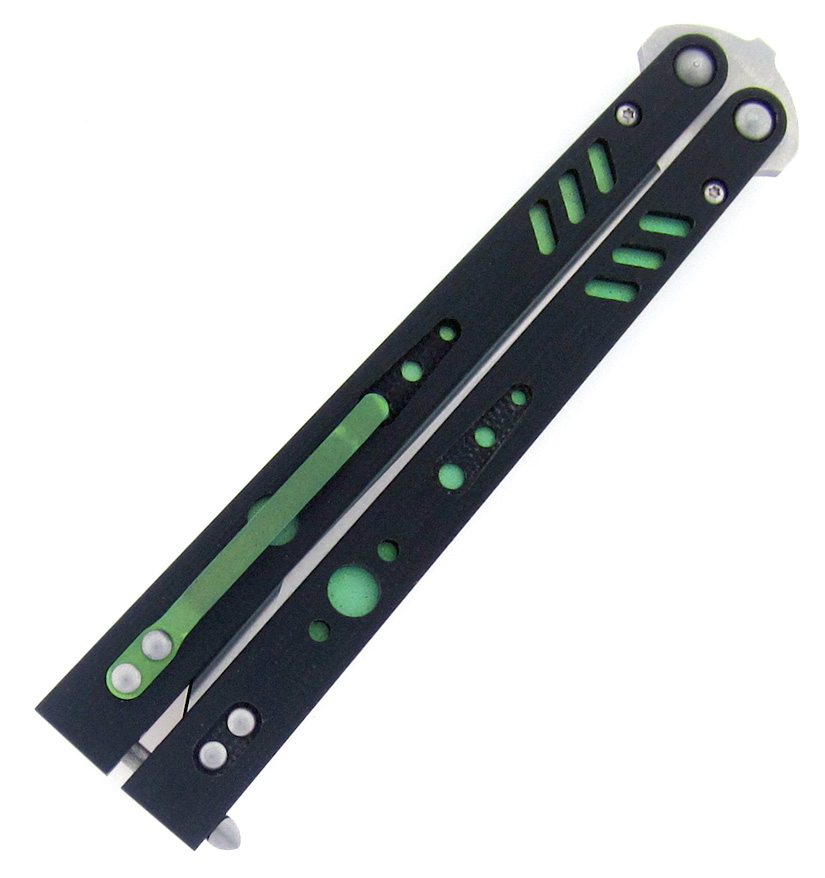 BladeRunners Systems BRS Premium Replicant Balisong Butterfly Black G-10/Green Ti Stonewash