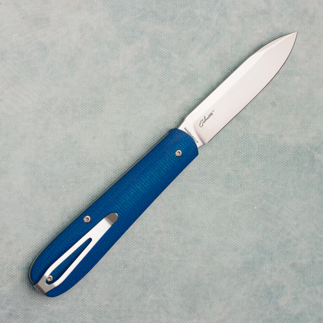 Boker Coffin Chuck Gedraitis Slip Joint Folder Denim Micarta Handles Satin MagnaCut Blade 112944