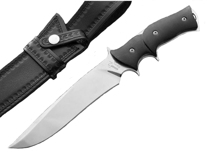 Custom knifemaker David Broadwell, from Texas, is famous for his fluent lines, which are achieved without sacrificing function. His design for the 2010 Boker Plus Collection knife proves that without a doubt. The 440C stainless steel blade runs through the whole knife and offers extraordinary strength. This design is a classic variation of a fighting knife. The second handguard (subhilt) will prevent the hand from slipping onto the blade or off of the handle during powerful, pulling cuts. The beautifully shaped black Micarta handles feel comfortable in the hand, without feeling bulky. This serialized piece, which is strictly limited to 999 pieces worldwide, comes packaged in a decorative gift box with a premium leather sheath and certificate.