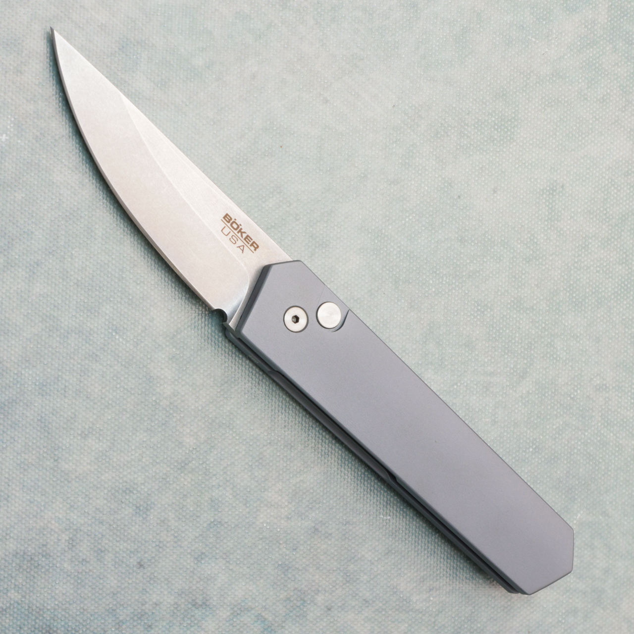 Boker Plus/Pro-Tech Burnley Kwaiken Compact Auto Silver Handle Stonewash Blade 01BO253