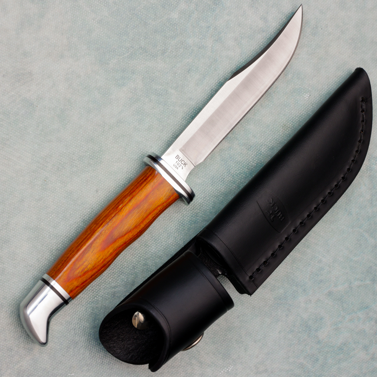 Buck 102 Woodsman Fixed Blade Cocobolo Wood Handle w/ Nickel Silver Handle/Guard Satin Blade 14187