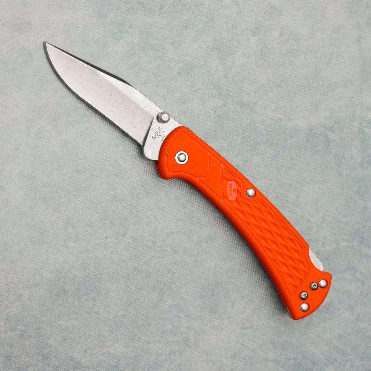 Buck 112 Slim Ranger Select Lockback Orange GFN Handle Stonewash Blade 12024