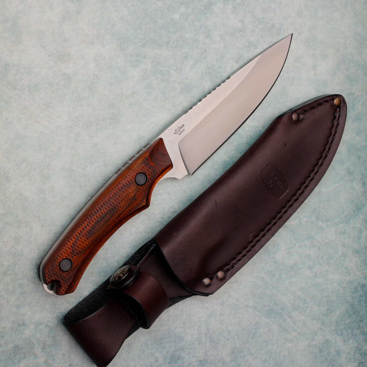 The Buck Alpha Guide is a multi purpose field knife built for hunting and rigorous outdoor use. The S35VN steel will hold an edge without needing to be sharpened often. This knife features a long blade edge with an upswept drop point blade. The high panel flat grind strengthens the blade, allowing you to cut confidently. Jimping on the top of the blade gives you the ultimate control when using different grips on the knife for detailed work. The purpose designed textured handle gives you a trusted grip, even in wet conditions. Includes a reinforced leather sheath that keeps your knife on your belt or safely in your pack. The Buck Alpha Guide is the perfect knife for the hunter and outdoorsman who demands the most of their equipment. New in Box.