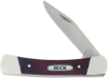 This old and discontinued Buck has real nice rosewood handle scales. Satin finished stainless steel clip point blade. Blade has good strong snap. Nickel silver bolsters, liners, handle pins and inlaid Buck oval shield. Proudly made in the U.S.A. Like new condition.