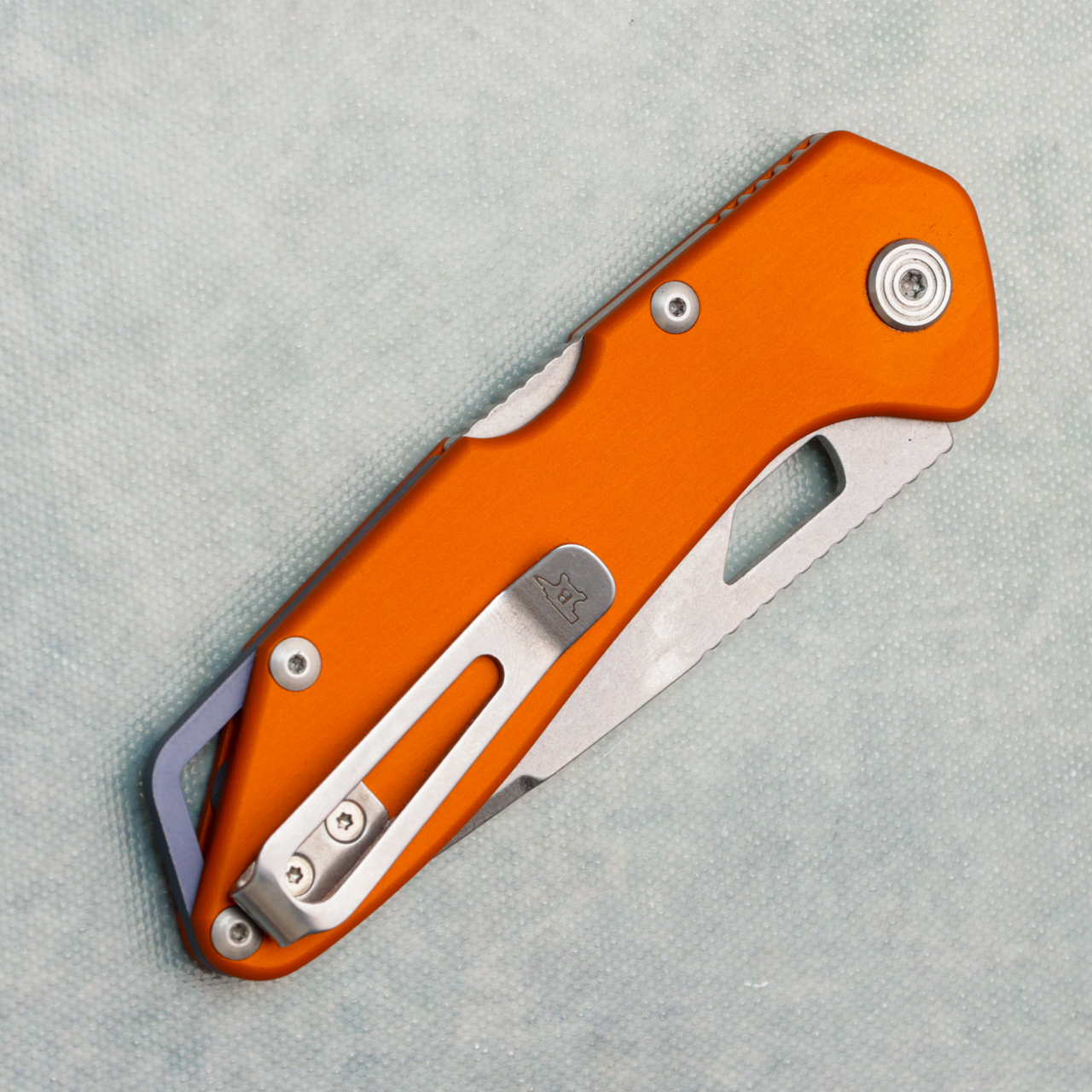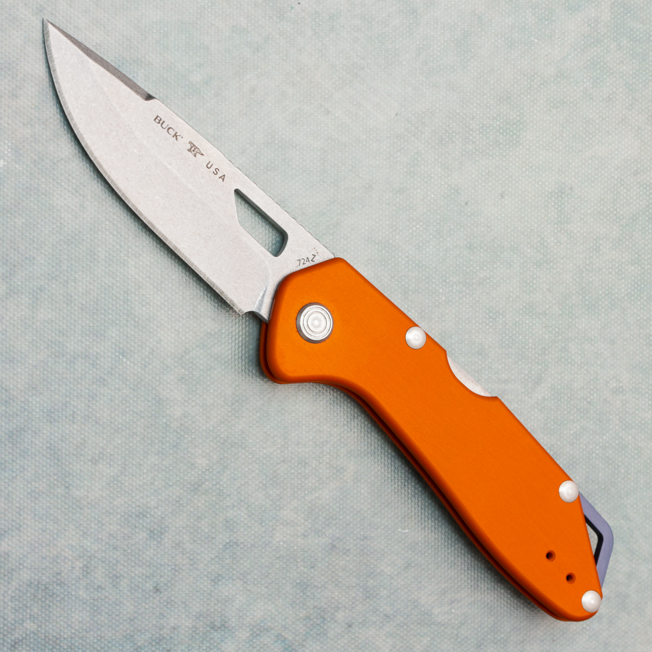 Buck 724 Mustang Back Lock Orange Aluminum Handles 420HC Stonewash Blade 14398