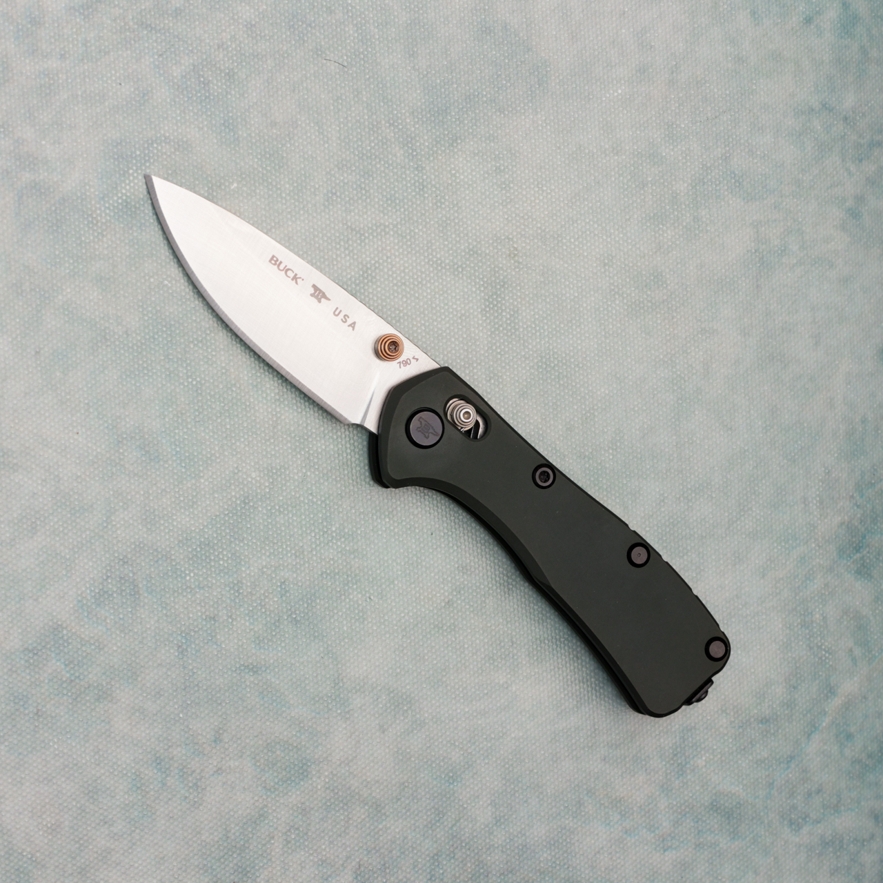 Buck 790 Mini Range Elite Crossbar Lock Green Aluminum Handles Satin MagnaCut Blade 13908