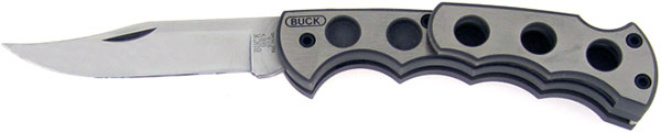 This is one rare, old, and discontinued Buck Knife. Grey matte and satin finished titanium handle with indented circles and is etched BUCK on both sides. Black hex head handle screws. Satin finished stainless steel clip point hunting blade. Has removable heavy duty matching pocket clip. This is a high quality discontinued Buck pocket knife that was proudly made in the U.S.A. in 1987 and still has the hard to find matching pocket clip. The knife is lightly used but still in good condition. Don't miss this one.