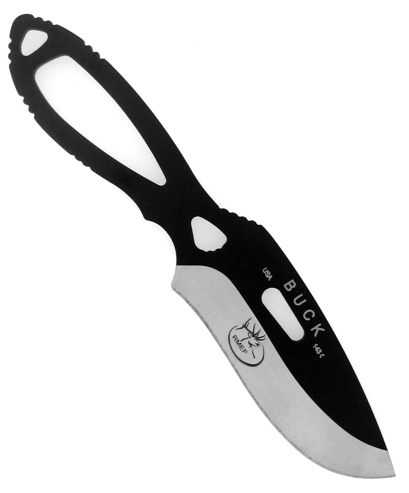 The Buck 143 PakLite Skinner is designed to meet a hunter's field dressing demands, anywhere from skinning to cutting joints. The re-curved skinner blade makes for quick work of the tasks you require. The finger choil and jimping allow for ultimate control, while the minimalist design makes it lightweight and easy to carry in its nylon sheath. This is a great knife for packing into the field when every ounce counts. The 420HC stainless steel blade and black traction coated skeletonized frame ensure corrosion resistance and make the knife easy to clean. The blade and sheath both feature the Rocky Mountain Elk Foundation logo. New in box.