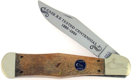 Limited Edition Case XX Knife. Case knives have been made by skilled American craftsmen since 1889 ... made with quality, attention to detail and uncommon pride. The Foster Brook Wood Commemorative knife continues in that fine tradition, offering further testimony to the definitive art of knifemaking as defined by Case for over 100 years. This exquisitely crafted knife features a polished stainless steel blade etched with the Case anniversary blade logo. The handles are made of genuine wood from the Foster Brook plant, rich in beauty and tradition. A special Case anniversary circle shield compliments the handle. The front bolster is etched with the serial number #0159 with the Case long tail C. This awesome knife comes new in a special blue display box with the Case 100th Anniversary logo.
