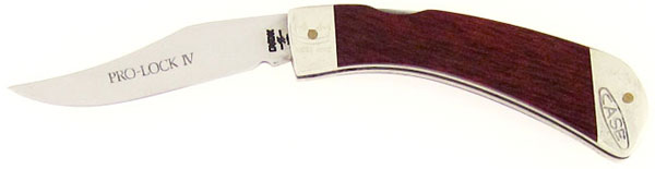 Old Discontinued Case XX Knife. Real nice rosewood handles. Stainless steel clip point blade etched PRO-LOCK IV. Awesome one piece nickel silver bolsters and liners. The front bolster is stamped QUEEN MINE with a picture of a crown and the rear bolster is stamped CASE. Brass handle pins. A great Case Pro-Lock pocket knife and hard to find.