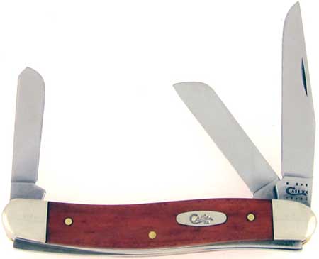 Real nice smooth chestnut bone handle scales. Polished stainless steel turkish clip point blade, sheepsfoot blade, and spey blade. All blades have good strong snap. Brass liners and handle pins. Nickel silver bolsters and inlaid Case XX oval shield. Born April 07, 2011. Comes brand new in box.