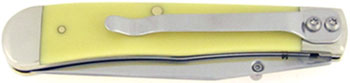 The classic smooth yellow delrin handle scales. High polished chrome vanadium steel clip point blade. The thumb stud and liner lock make this knife great for easy one handed operation. Nickel silver bolsters and inlaid Case oval shield. Brass liners and handle pins. Removable pocket clip for tip down carry. Aclassic style pocket knife with the added conveinece of a pocket clip. Brand new in box.