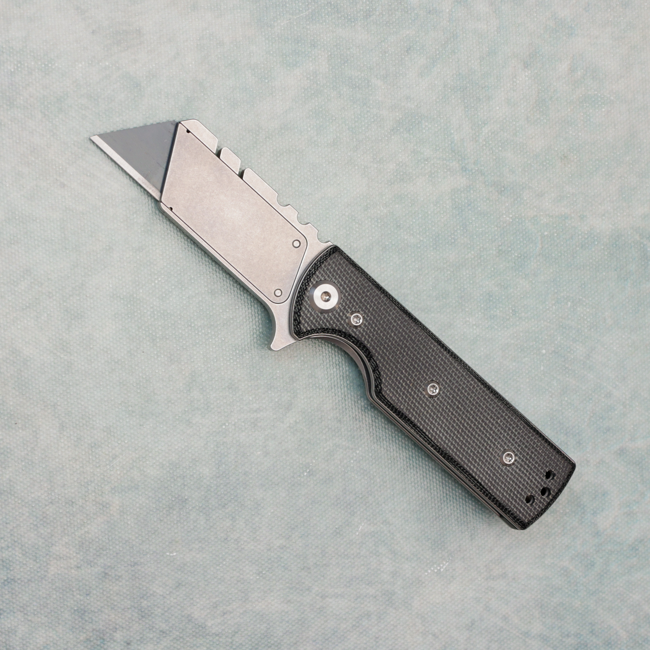 Chaves Knives Blue Label CHUB Flipper Handy Utility Blade Black Micarta Stonewash