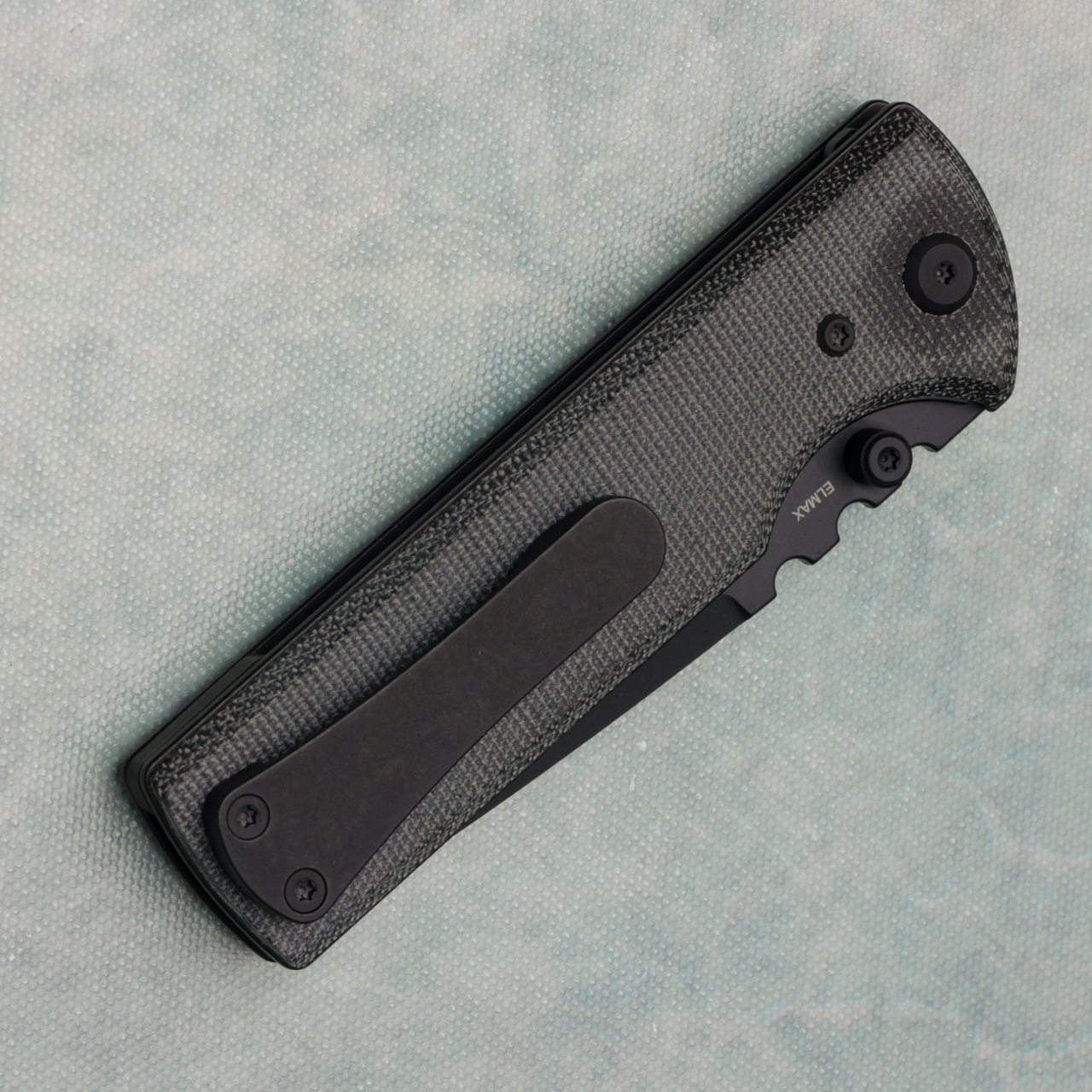 This particular version features a black micarta handles. Black finished drop point with standard cutting edge. Standard clip and secondary standard skull clip included.