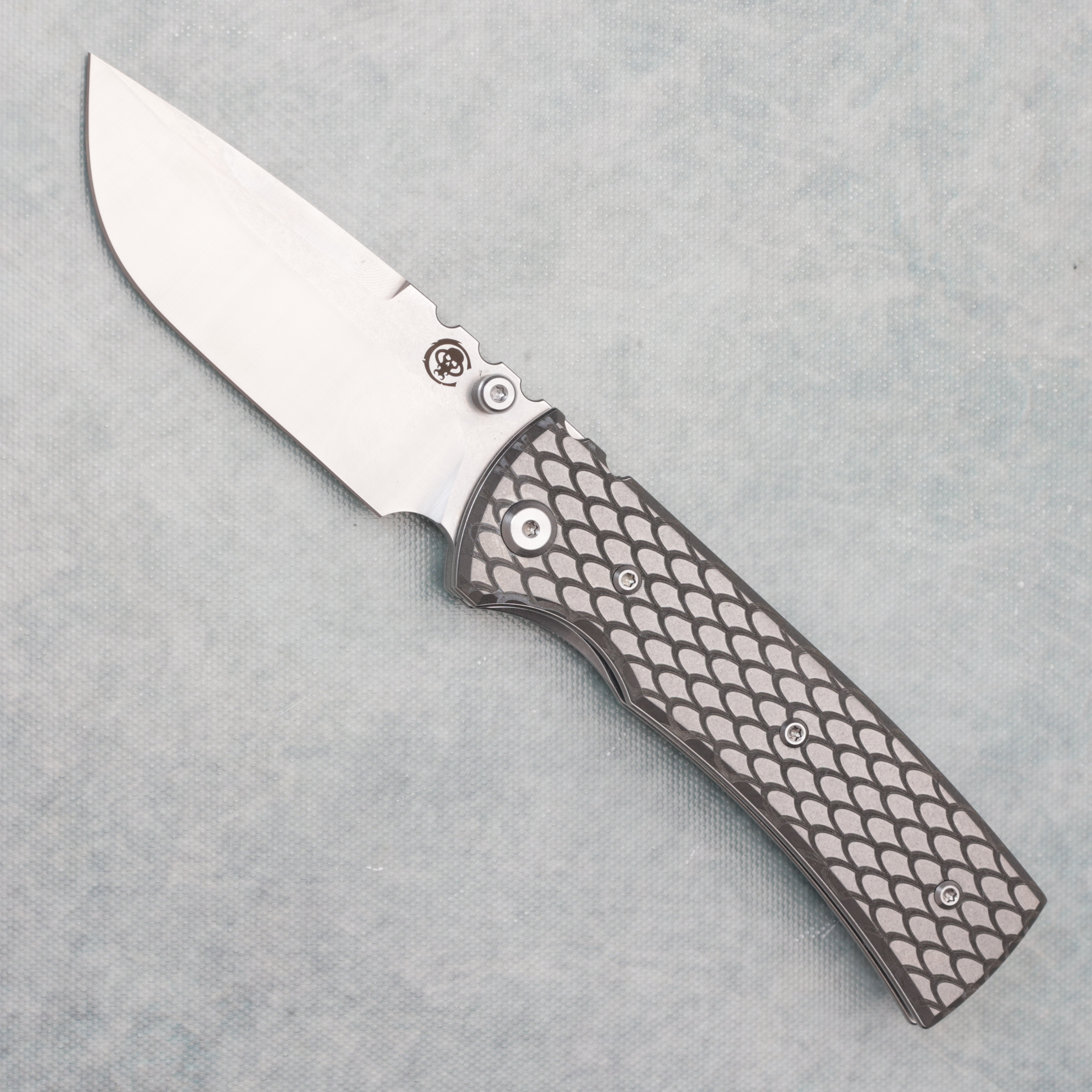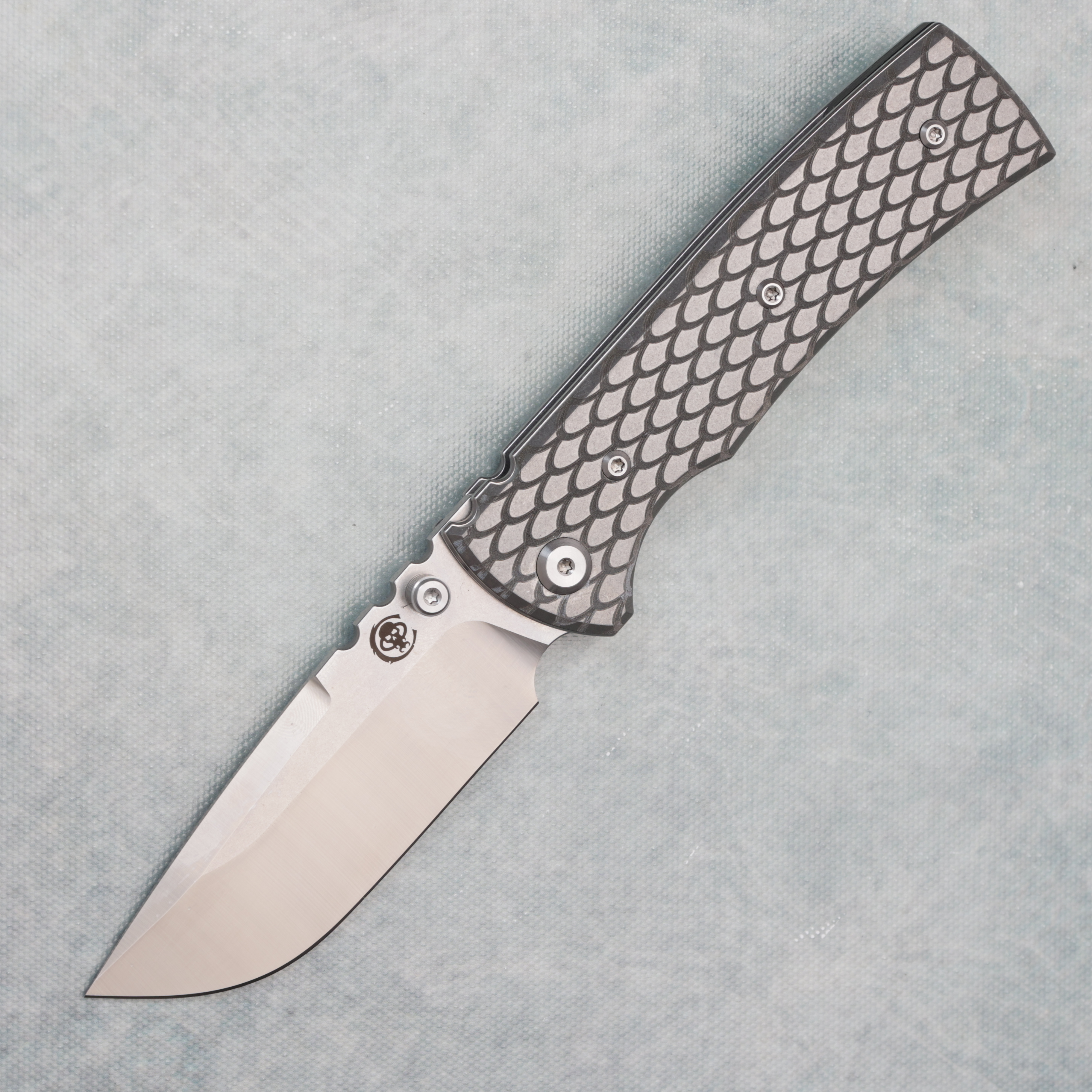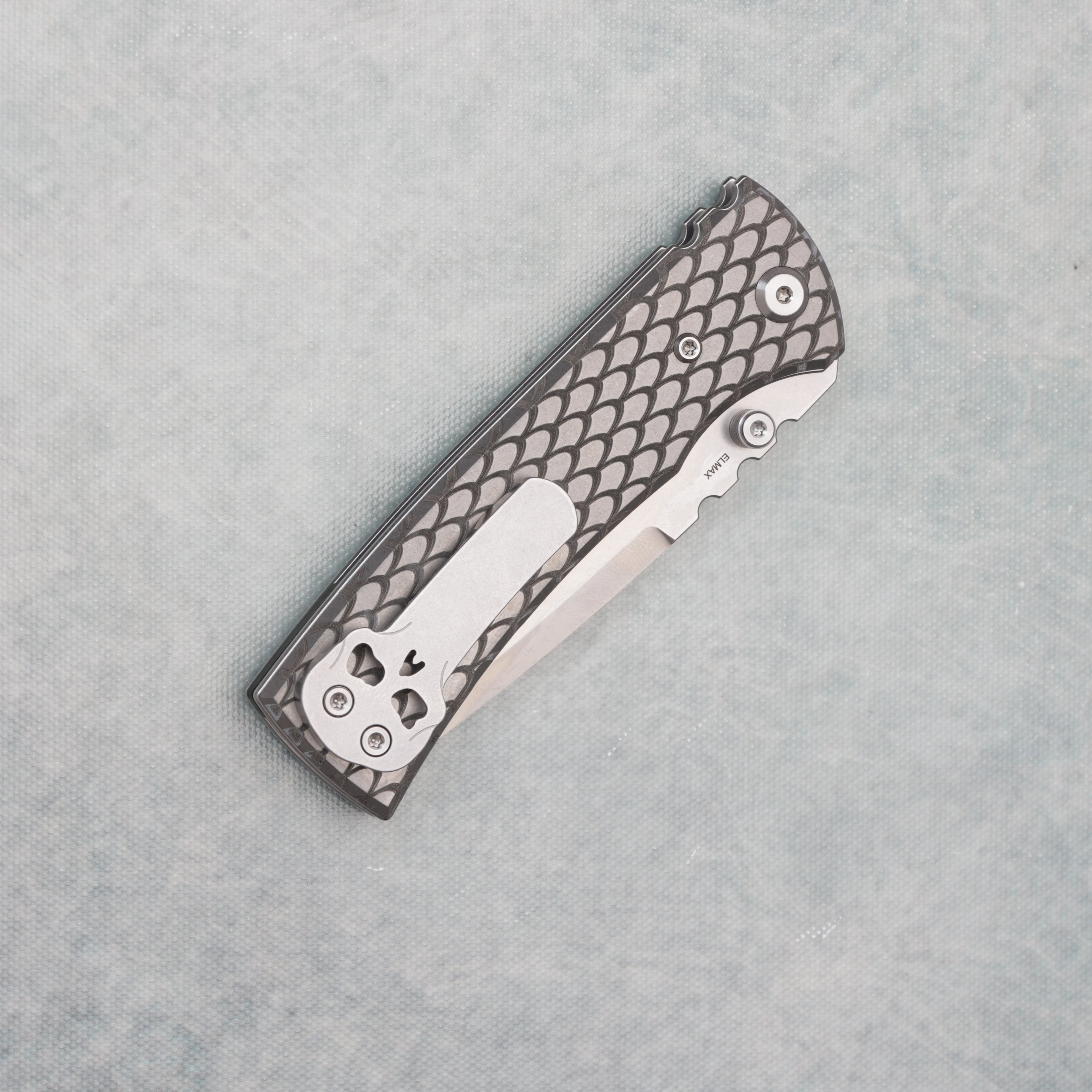 Chaves Knives Blue Label Redencion 229 Liner Lock Reverse Dragon Scale Engraved Titanium Handles Satin Elmax Drop Point Blade AE CUSTOM SHOP