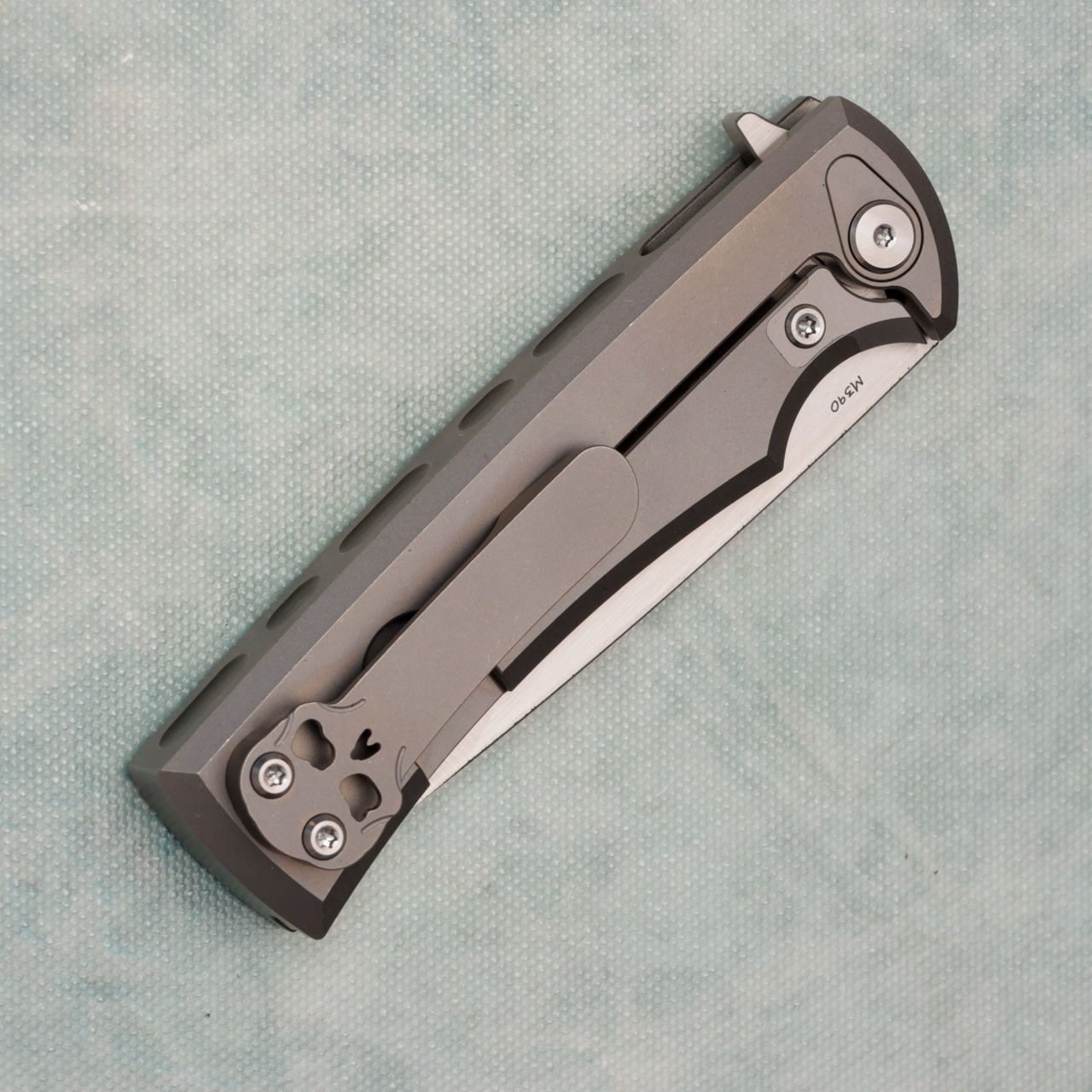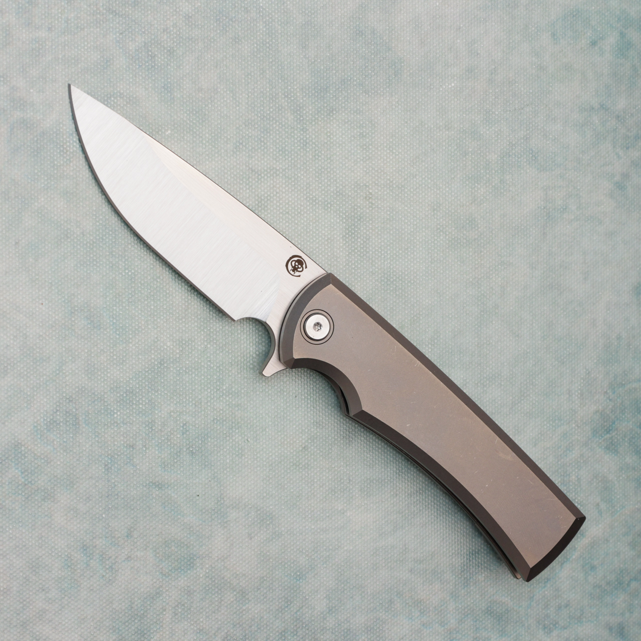 This model features a stonewash finished integral titanium handle. Satin finished M390 drop point blade, with standard cutting edge etched with Chaves logo. Framelock with replaceable lockbar insert. This is one great knife, with a great price point. Brand new in box.