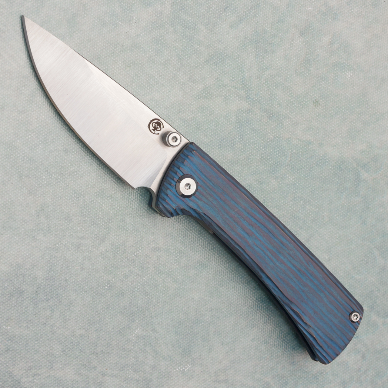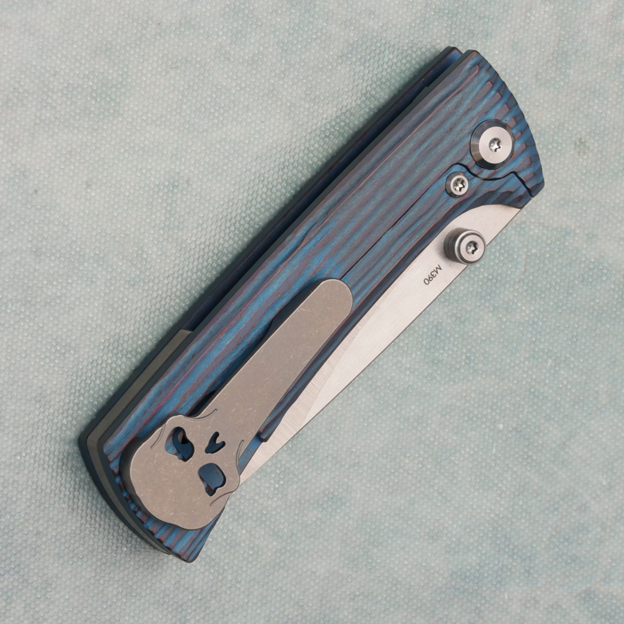 Chaves Knives RCK9 Frame Lock Blue Wood Grain Titanium Handles Satin M390 Blade RCK9/DP/SWTI/BF/BLU/WOOD