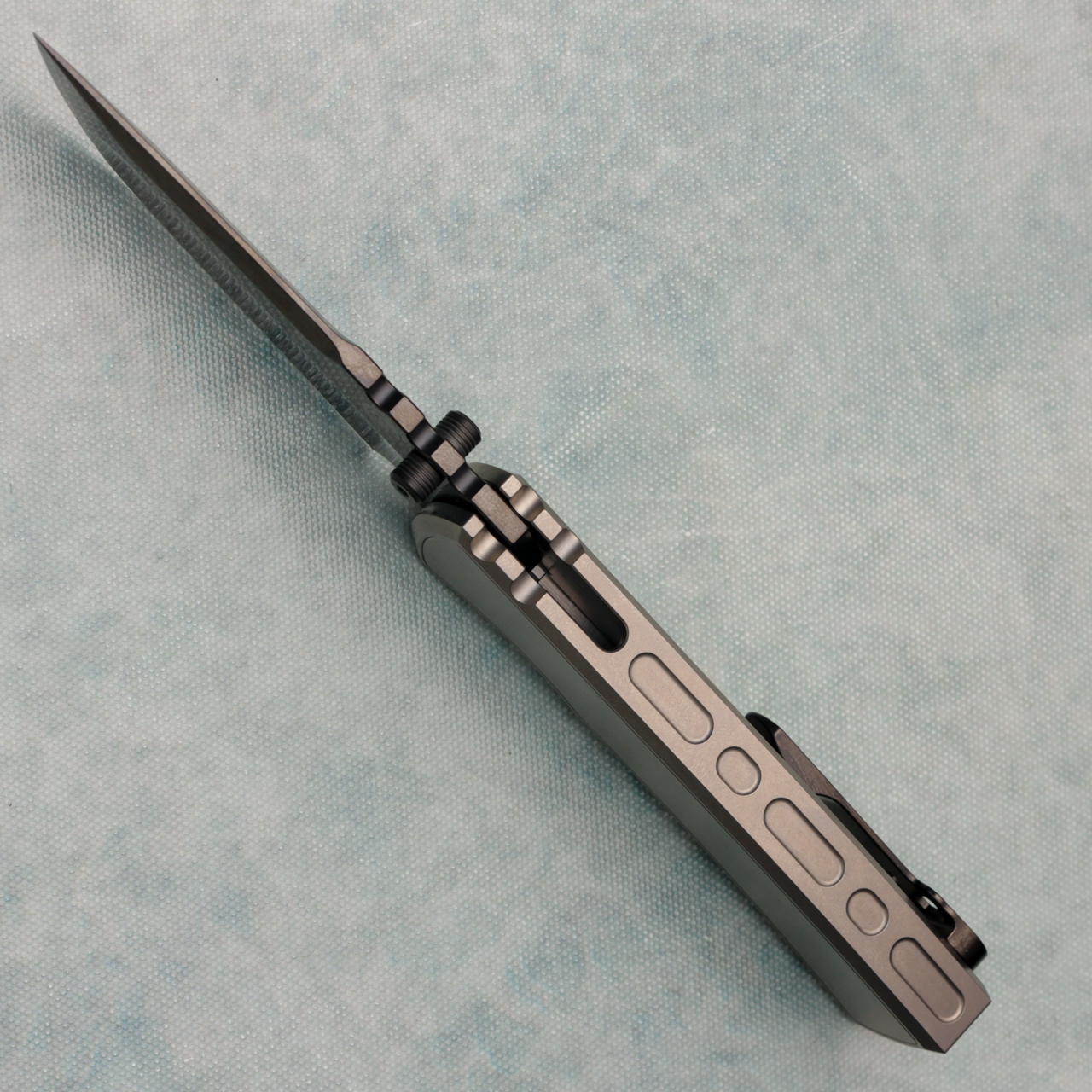 Chaves Knives Redencion 229 Integral Bright Stonewash Titanium Handles w/ Bright Stonewash Titanium Inlay Bright Stonewash Black DLC Drop Point Blade
